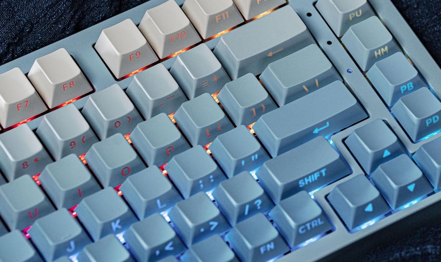 【133-Key Set for Full Compatibility】Designed to adorn a spectrum of keyboard sizes, the EPOMAKER Sky Blue Keycap Set is compatible with 60%, 65%, 75%, TKL (Tenkeyless), 96%, 1800-compact, and full-size ANSI/ISO keyboards. Whether you own a compact keyboard or a full-size layout, these keycaps fit seamlessly, making them a versatile choice for keyboard enthusiasts everywhere.