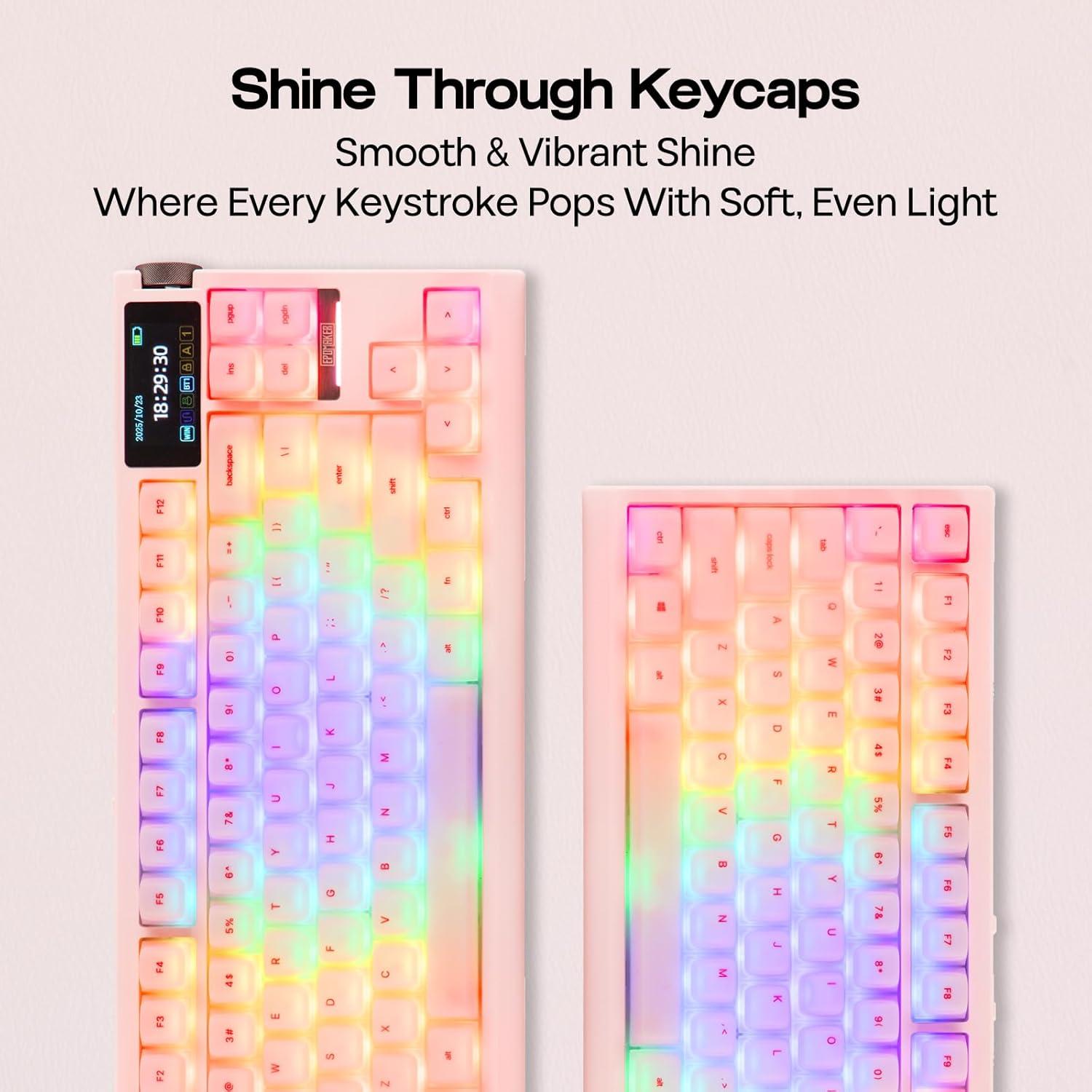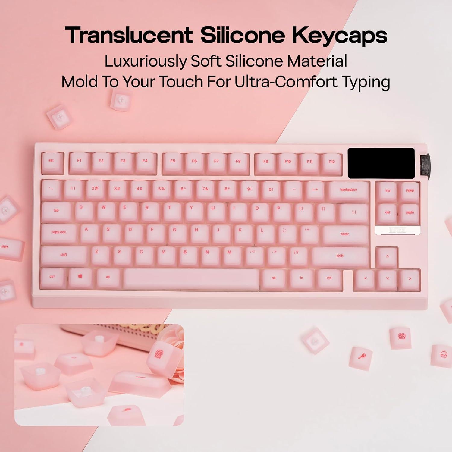 EPOMAKER AegisSil Keycap Set, Silicone Material, Cherry Profile, 113 Keys, 65%/75%/96%/Full Size, Custom Keyboard Keycaps Set for Cherry MX, Kailh, Outemu, Gateron Mechanical Gaming Keyboard (White)(Pink)