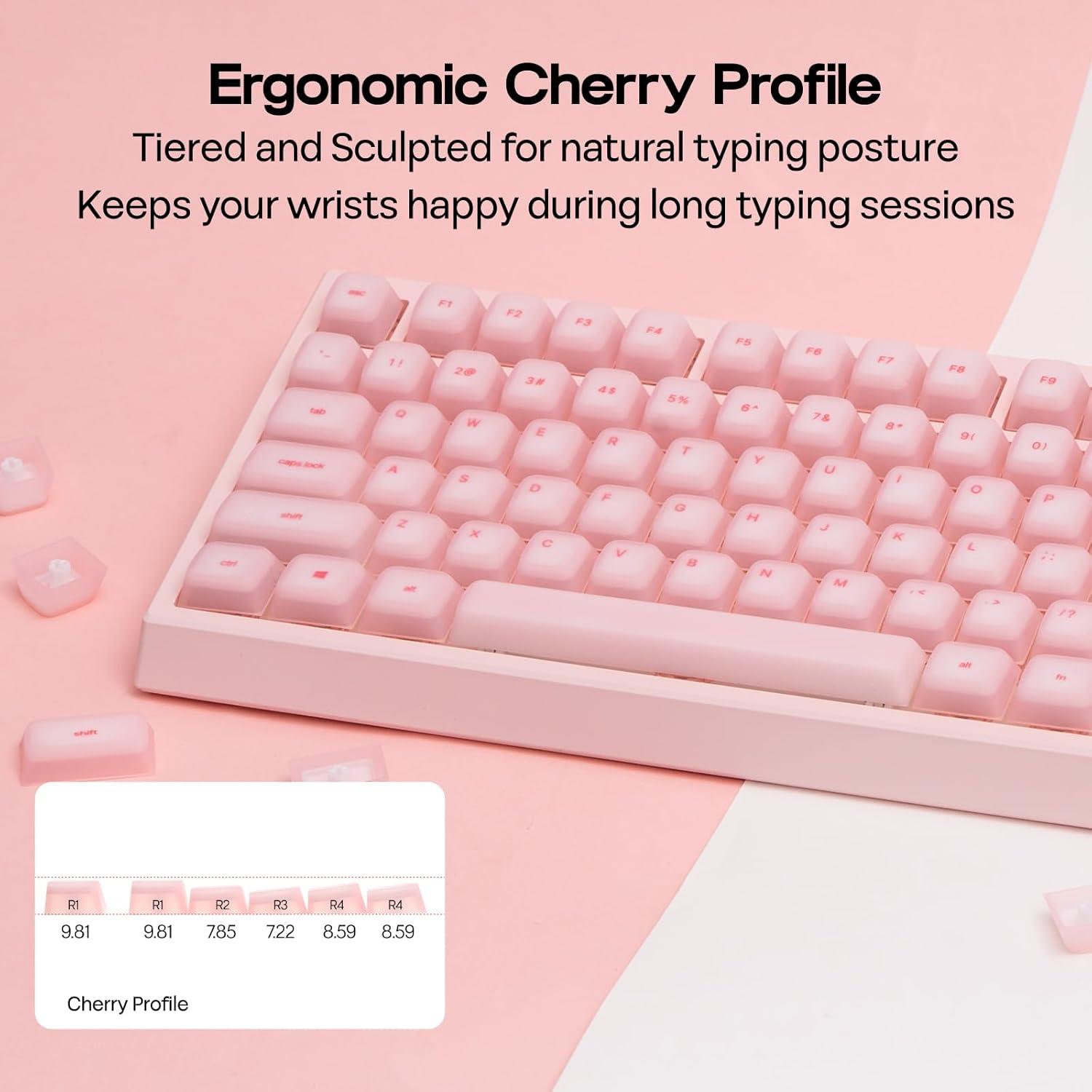 Comfortable Cherry Profile Keycaps: Designed with ergonomic height differences between R1-R4 rows, the AegisSil keycap adopts the wrist-friendly tilt angles of Cherry profile for unbeatable typing comfort. The taller R1 row makes reaching for F1-F12 rows much easier without overly stretching your fingers, while the lower R2-R3 cut back pressure on your wrist while typing