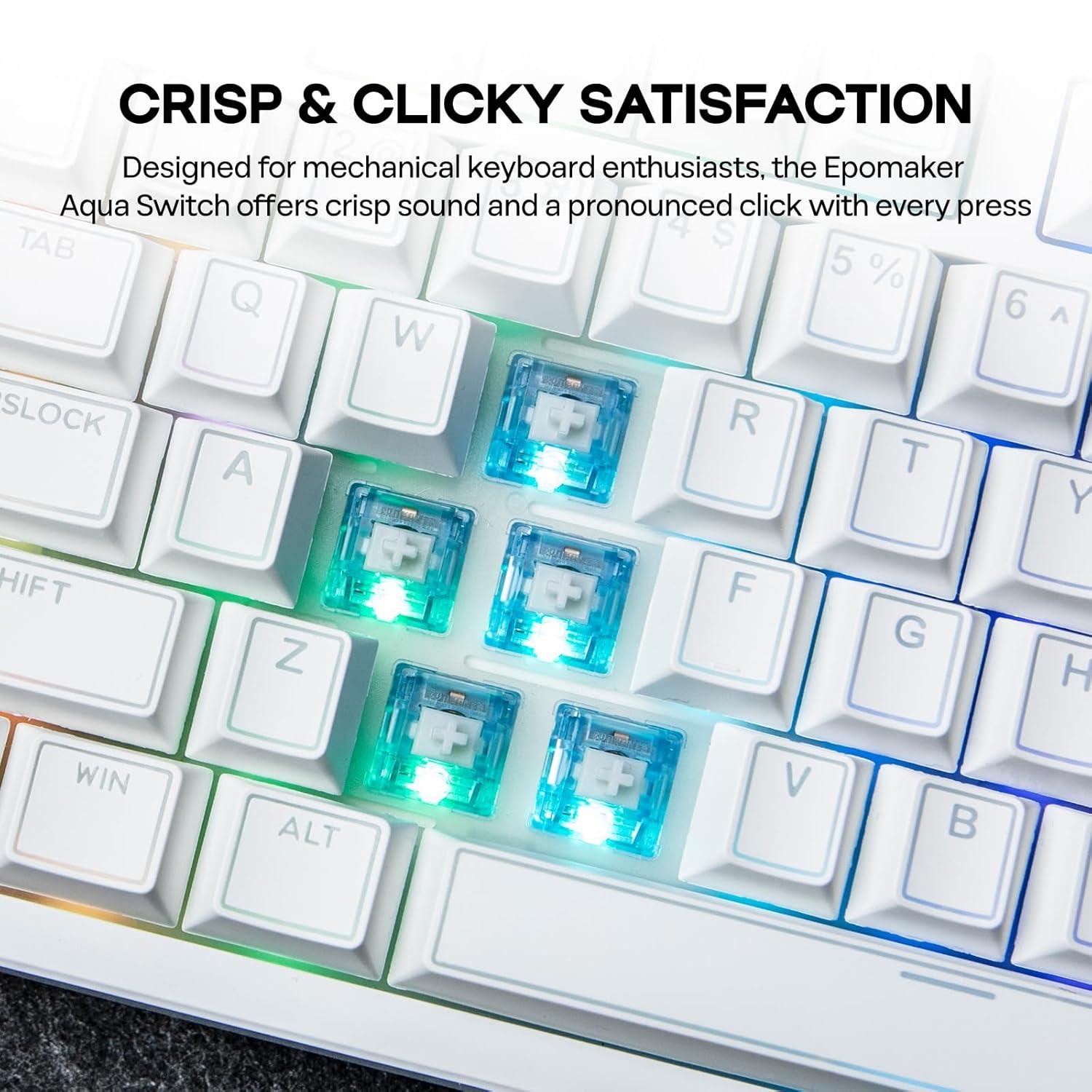 Crisp, Clicky Satisfaction: The Epomaker Aqua Switch is engineered for enthusiasts who seek crisp, tactile actuation accompanied by satisfying auditory feedback. With an actuation force of 46±20gf and a bottom-out force of 62±20gf, it provides a consistent clicky response ideal for high-accuracy typing and real-time input feedback in gaming environments