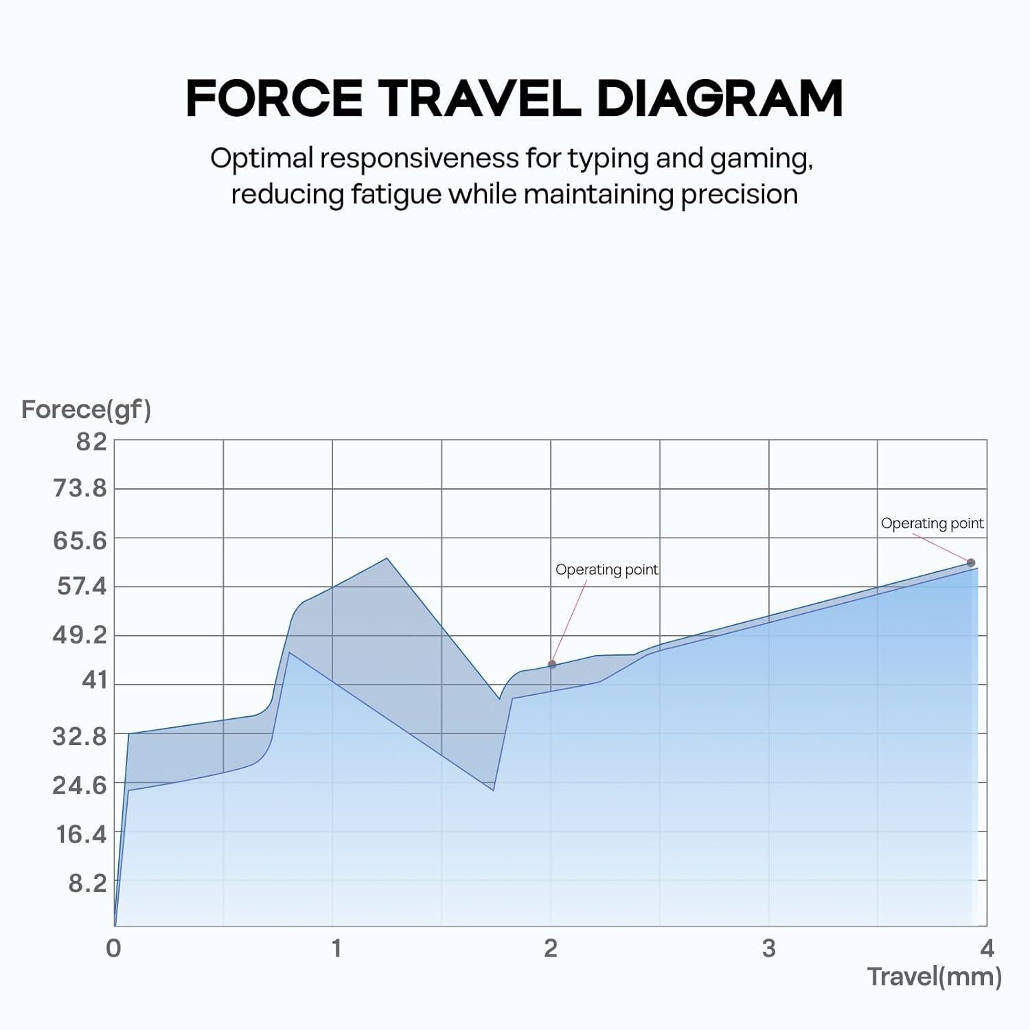 Optimized Travel for Balanced Performance: Featuring a pre-travel distance of 1.5±0.3mm and a total travel distance of 3.9±0.3mm, the Aqua Switch strikes a fine balance between responsiveness and keystroke depth. This refined travel specification enhances input accuracy and supports fast-paced typing or gameplay with minimal fatigue
