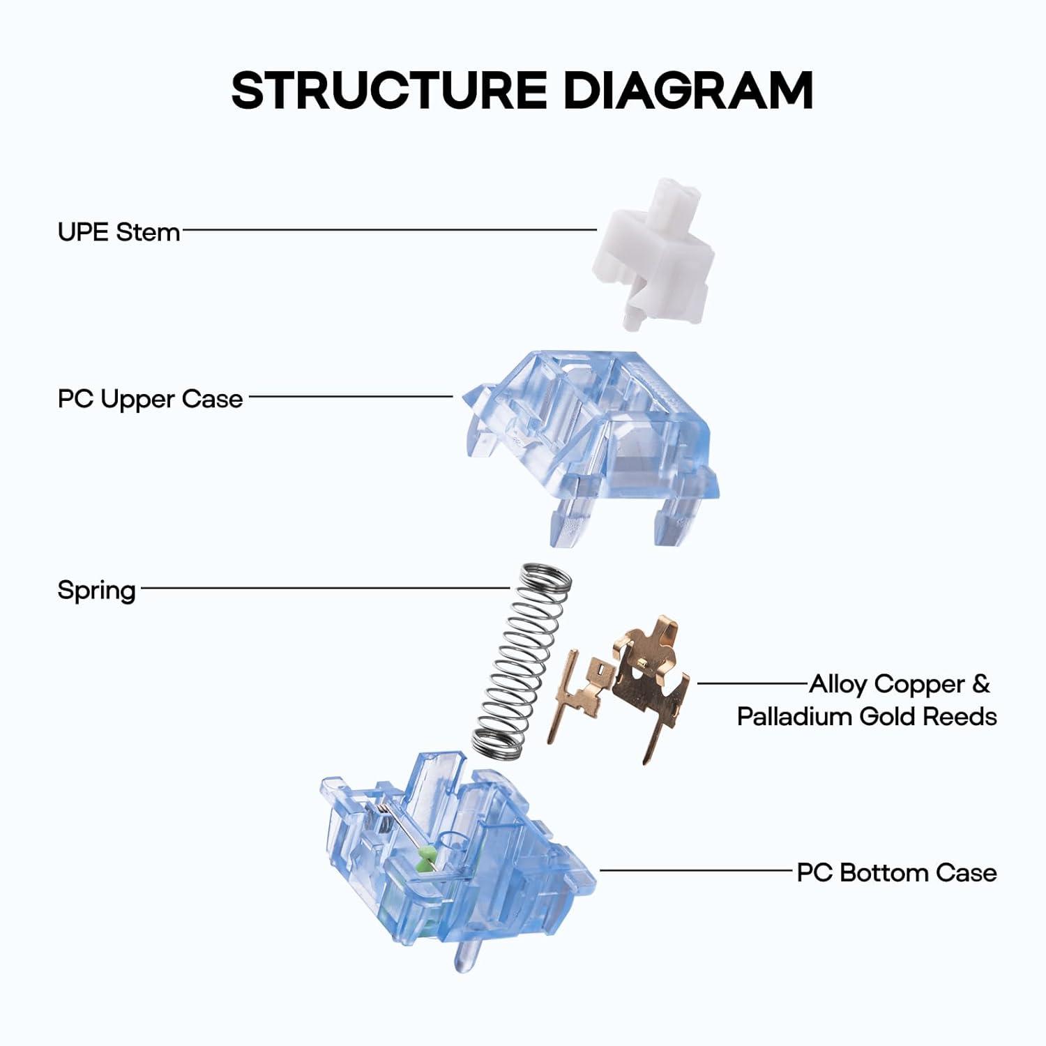 Factory-Lubricated for Enhanced Smoothness: Pre-lubricated at the factory, the Aqua Switch minimizes internal friction and reduces pinging or scratchiness often found in unlubed clicky switches. This results in a more polished keystroke feel with improved sound control—ready for deployment without additional tuning