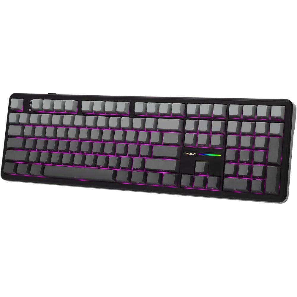 EPOMAKER Aula F108 Full Size Wireless Gaming Keyboard with 4000mAh Battery, 108 Hot-Swappable and Programmable Keys, NKRO, RGB Backlight, for Win/Mac/PC/Android (Grey&Yellow)(Black Gradient)