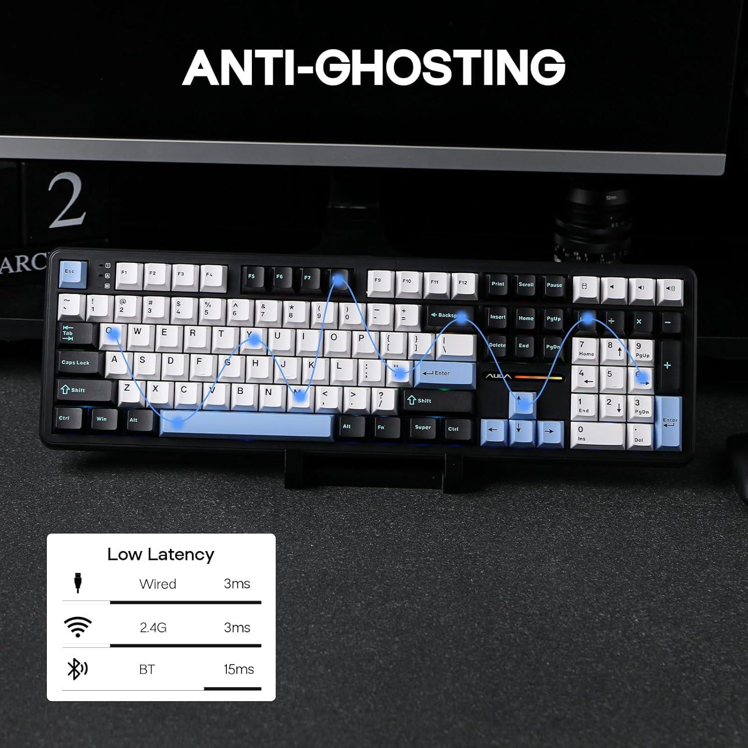 100% in Size, Performance and Comforts: Meet the 100% full size variation of the EPOMAKER X AULA F75, the F108 Mechanical keyboard that offers the same creamy sound and unparalleled performance as F75 but in upgraded full-size layout. The 108 anti-ghosting keys deliver accuracy and greater possibilities in configuration and control, which makes them ideal for multitasking and fast response in gaming and the office. While the 2-stage kickstand, low front height and cherry profile keycaps rid you of finger fatigue and wrist strain for a pain-free day of work