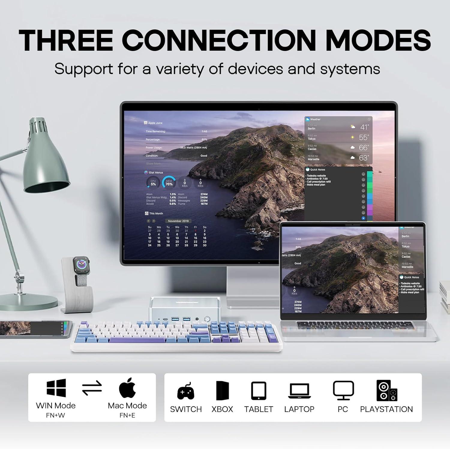 Wireless Keyboard with Limitless Compatibility: Packed with 4000mAh rechargeable batteries, double the power average gaming keyboard offers, F108 Wireless Keyboard grants up to 100 hours of continuous gameplay at peak performance with backlight off. Its versatile Bluetooth mode offers swift transaction from PC, Mac Laptop to Android Tablet, while the 2.4GHz wireless and USB Cable mode promise competitive-level stability and responsiveness with 1000Hz polling rate