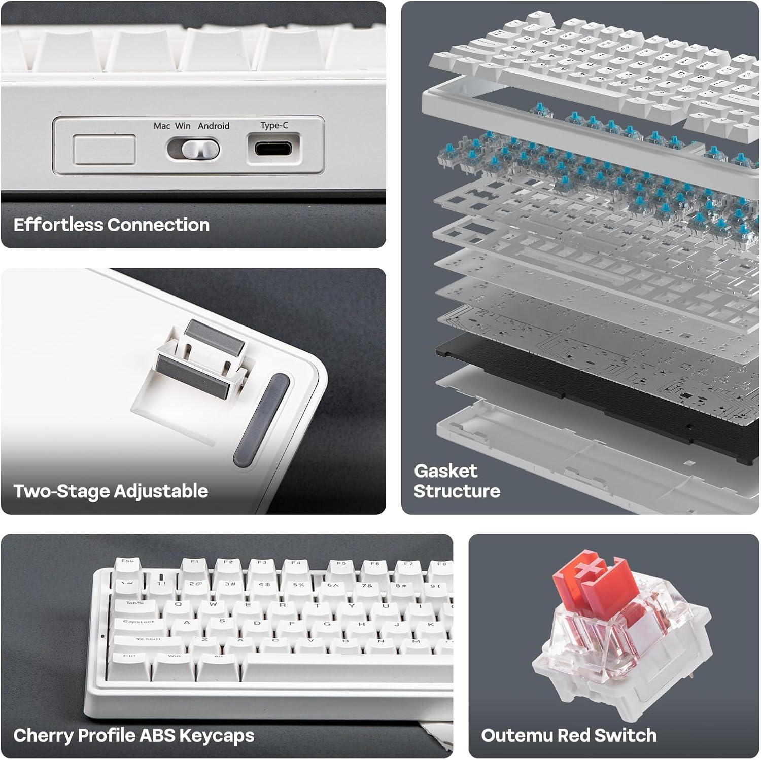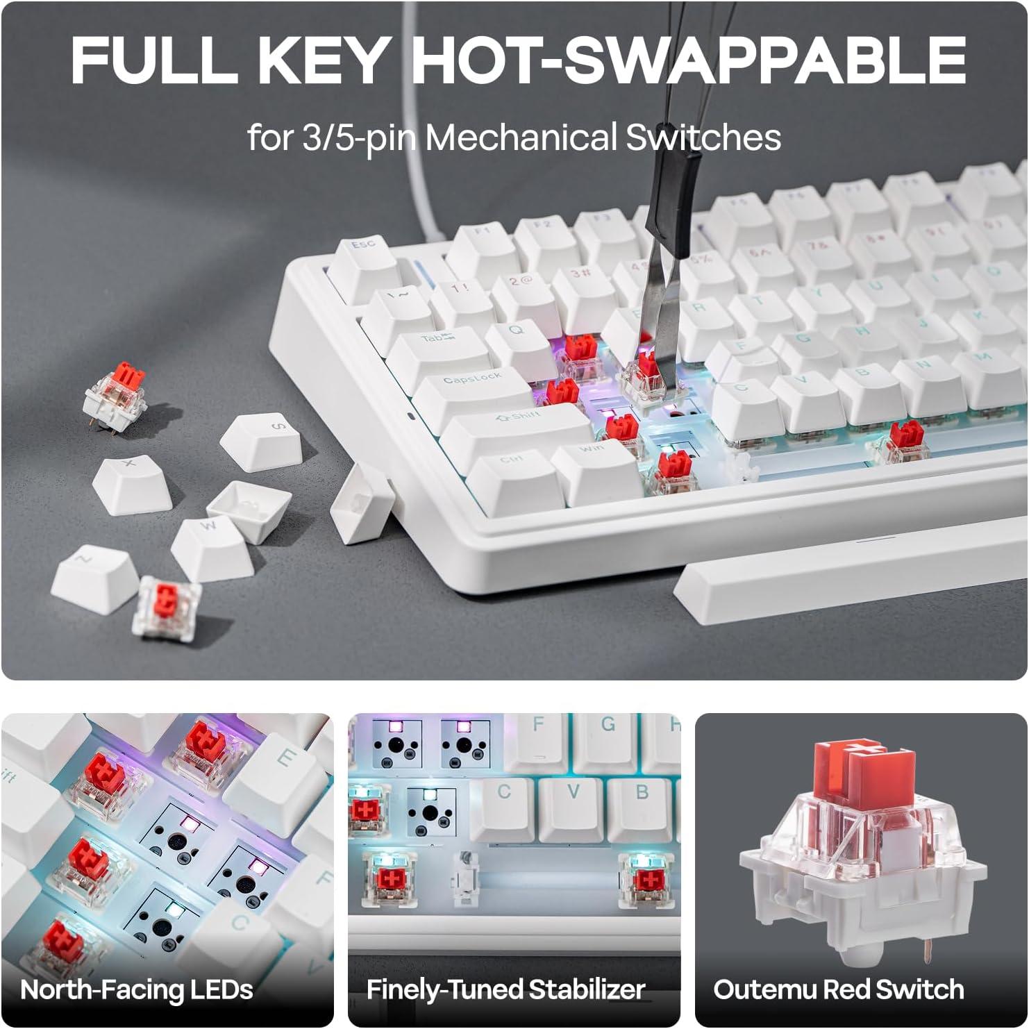 Gasket-Mounted Structure & Full Key Hot-Swappable: The F75-Wired features a gasket-mounted design, offering an enhanced typing experience by minimizing vibrations for a softer keystroke. This results in a smoother, more comfortable feel during long typing sessions, reducing finger fatigue. Additionally, the full key hot-swappable feature allows you to easily customize the switches without soldering, offering the flexibility to experiment with different switch types and feel the perfect combination that suits your typing or gaming style.