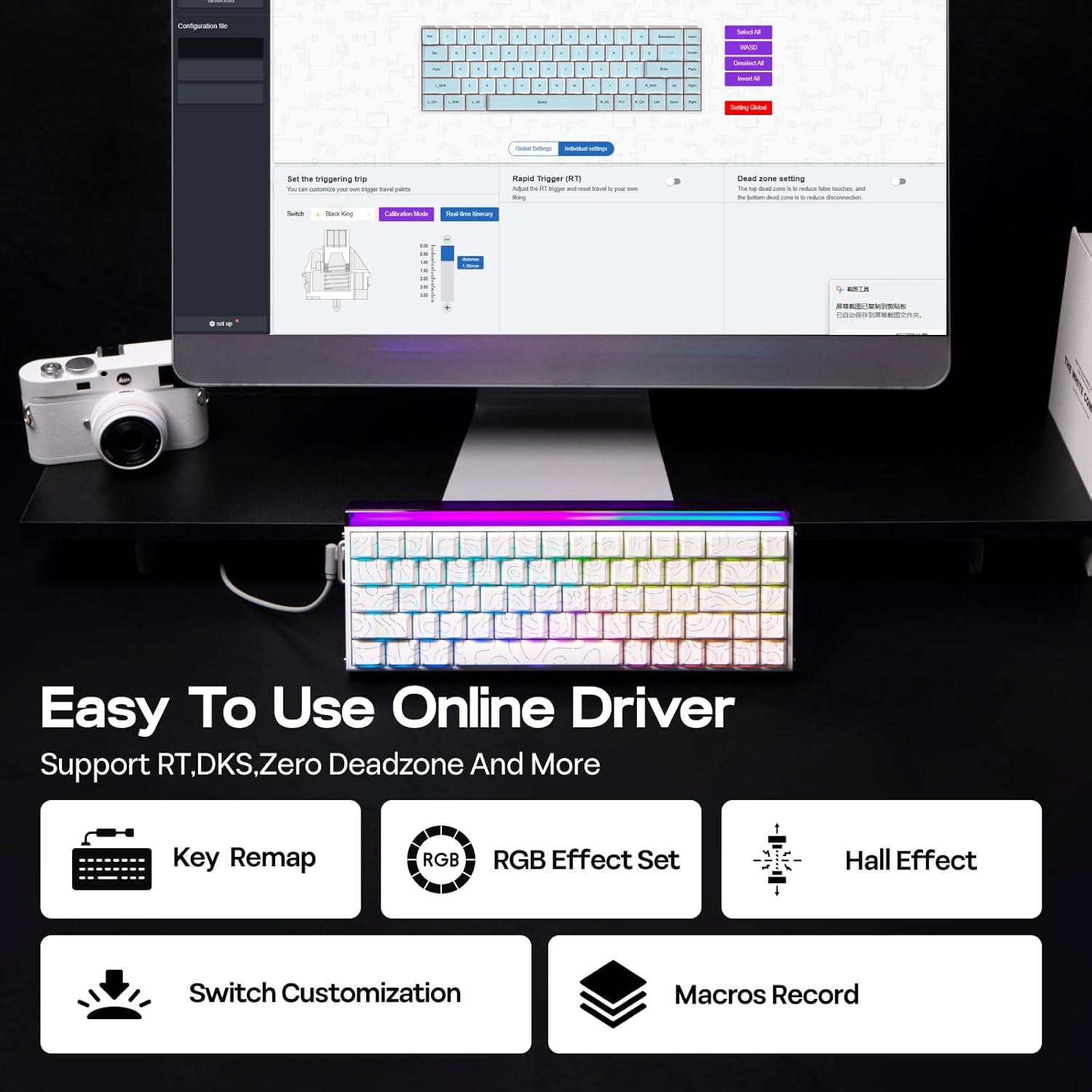 Personalized Gaming: Unlock your full potential with our Hero 68 HE with SOCD, Mod Tap, Dynamic Key Stroke and more. With web driver accessible wherever and whenever you need via Chromium-based browser, Hero 68 HE Gaming Keyboard promise speed and customization. Try out Mod Tap or Dynamic Keystroke to assign multiple functions to a single key, vary by a tap, hold or differences in travel, to active most used commands or tools in arsenal without releasing movement keys. Say goodbye to conflicting inputs or frozen at spot with SOCD (Snap Key) that prioritize the latter pressed as the solo input, for flawless movement without complex finger movement