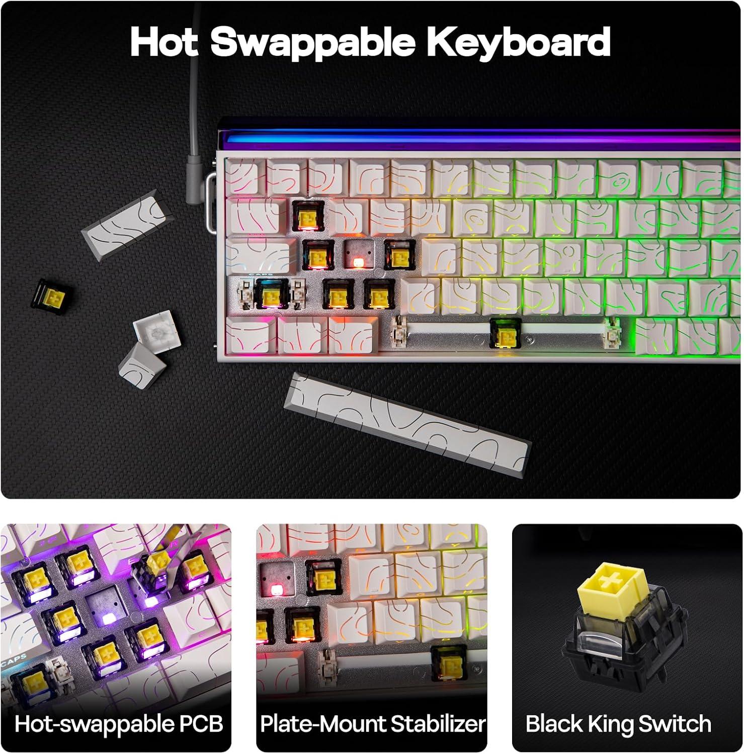 EPOMAKER Aula Hero84 HE Wired Hall Effect Keyboard with RGB Lightbox, 0.01mm Adjustable Actuation, 8KHz Polling, 0.125ms Latency, Snap Key, SOCD, Magnetic Gaming Keyboard (White Topographic)(White Topographic)