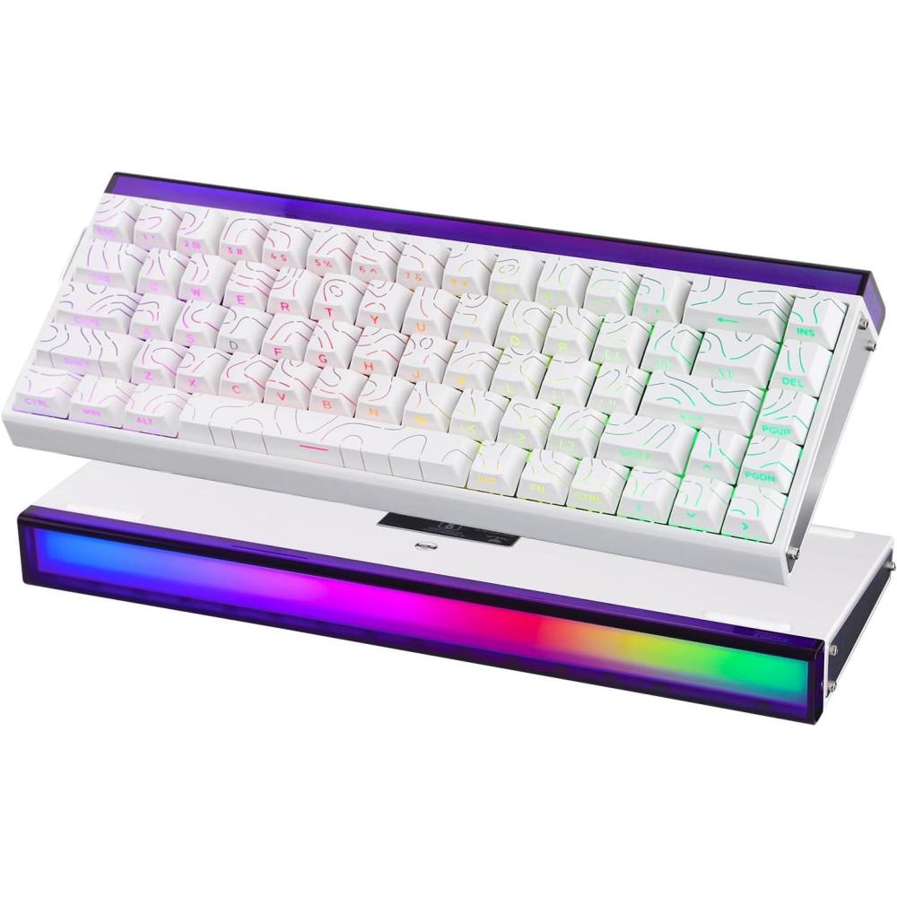 imageEPOMAKER Aula Hero 68 HE Wired Magnetic Gaming Keyboard 001mm Adjustable Actuation Rapid Hall Effect Switch 8kHz Polling 5Layer Sound Dampening RGB Box ampamp Backlight PurpleWhite Topographic