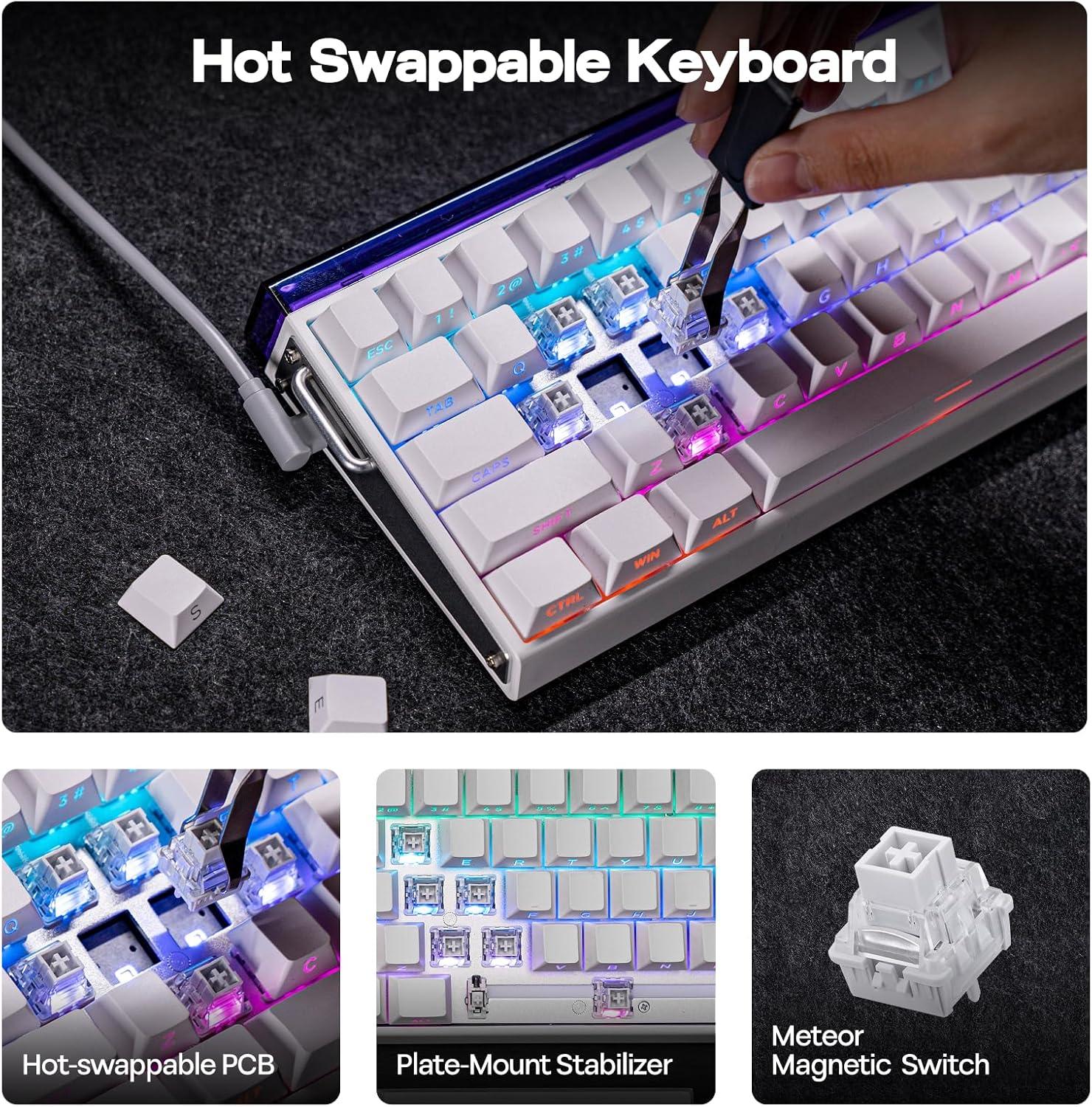 0.01mm Adjustable Actuation: Embrace the gaming-changing customization joy bestow by magnetic switch, that lets you fine-tune precisely when and how a keypress triggers. With adjustable actuation travel from 0.01 to 3.4mm, Hero 68 HE delivers impressive versatility, whether you need hair-trigger sensitivity for fast-paced shooters or deliberate keystroke for intricate strategy. With leading-edge hall effect switch, actuation can be done without physical contact between switch pin and PCB, eliminating inconsistencies that plague traditional mechanical keyboards for superior durability and a smoother, more consistent keystroke feel