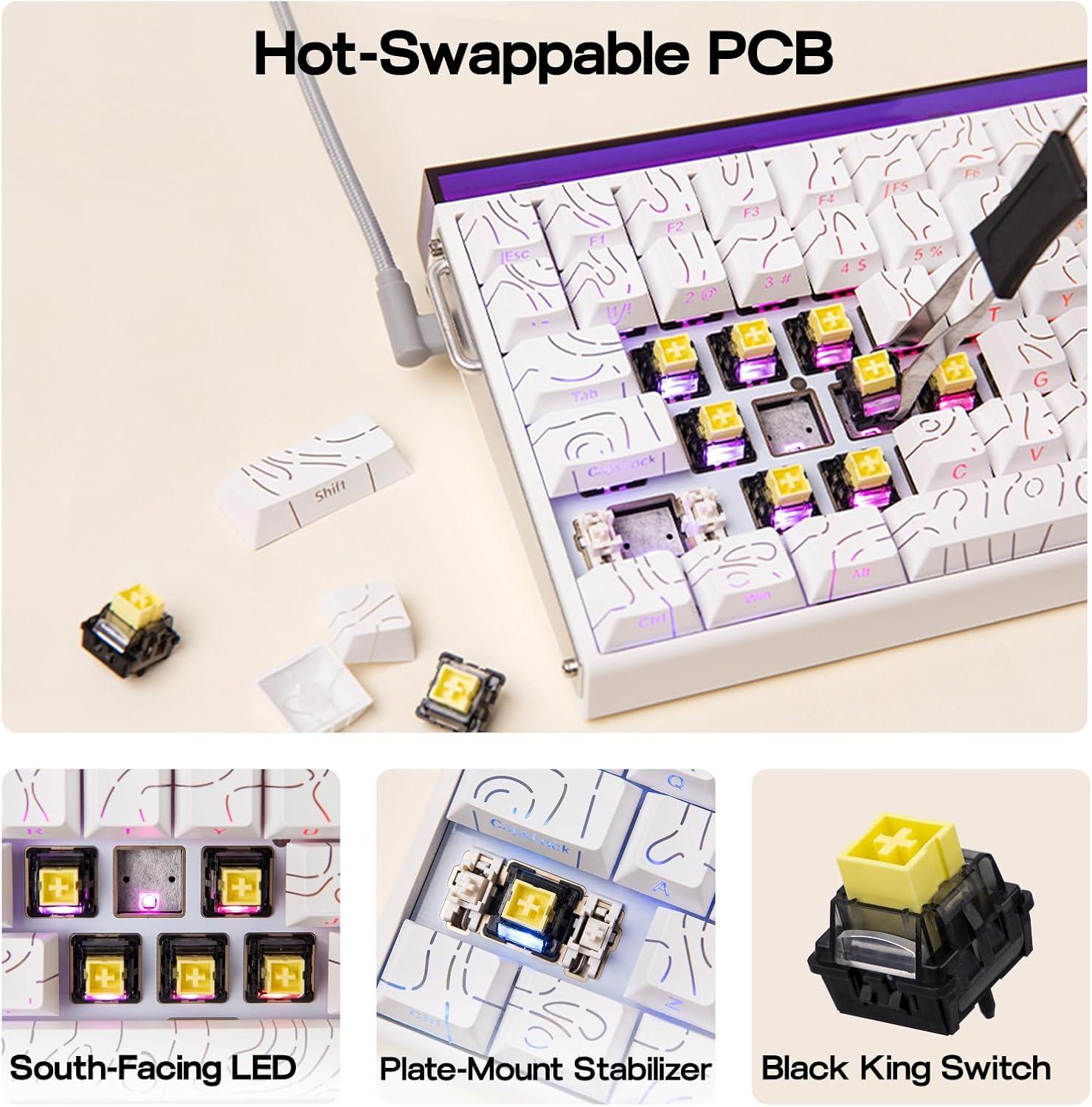 8K Polling Rate & 0.125ms Ultra-low Latency: Equipped with advanced Hall effect switch technology, Hero84 HE gaming keyboard offers an ultra-low latency of just 0.125ms, ensuring near-instant response to every keystroke for an exhilarating gaming experience. The polling rate is adjustable from 125Hz to 8kHz. Paired with the adjustable actuation point and 128 KHz scanning rate, it precisely captures every key press. In fast-paced FPS games, it gives you the edge to react quicker, gain the initiative, and outmaneuver opponents with ease.