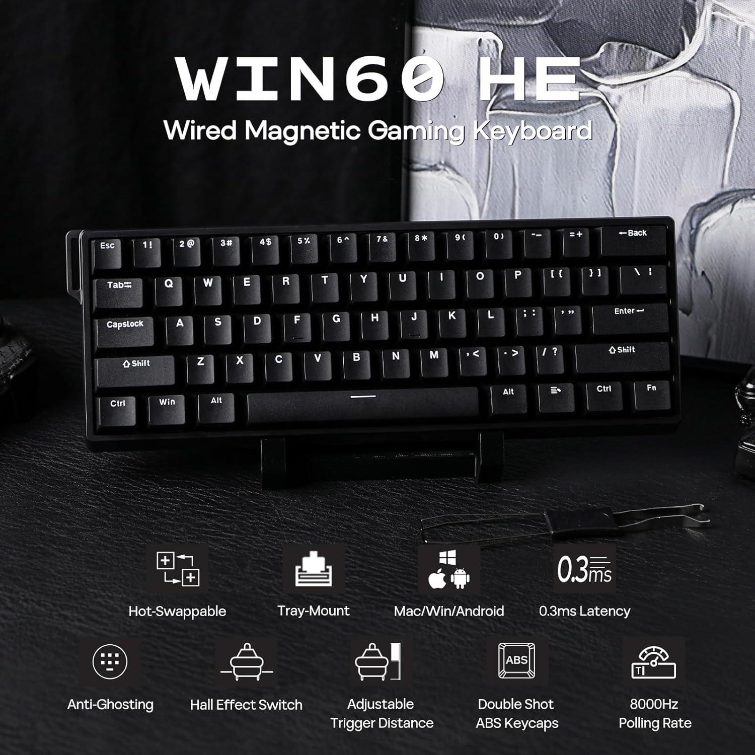0.3ms Latency Tested, 8000Hz Polling Rate: The WIN60 keyboard is a magnetic powerhouse, featuring both 8000Hz polling and 32KHz scan rates. Its ultra-low latency outperforms most 8000Hz magnetic switch keyboards, delivering a game-changing 8x faster response than traditional gaming keyboards.
