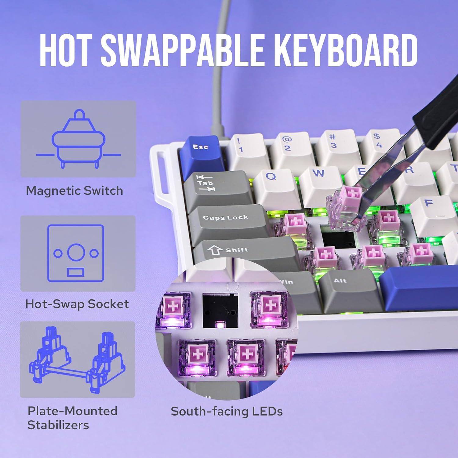 EPOMAKER Aula WIN60 HE 60% Wired Magnetic Keyboard with Adjustable Actuation, 8000 Hz Polling Rate, Hall Effect Switches, Hot-Swap, for FPS Games (Black)(Grey&White&Blue)