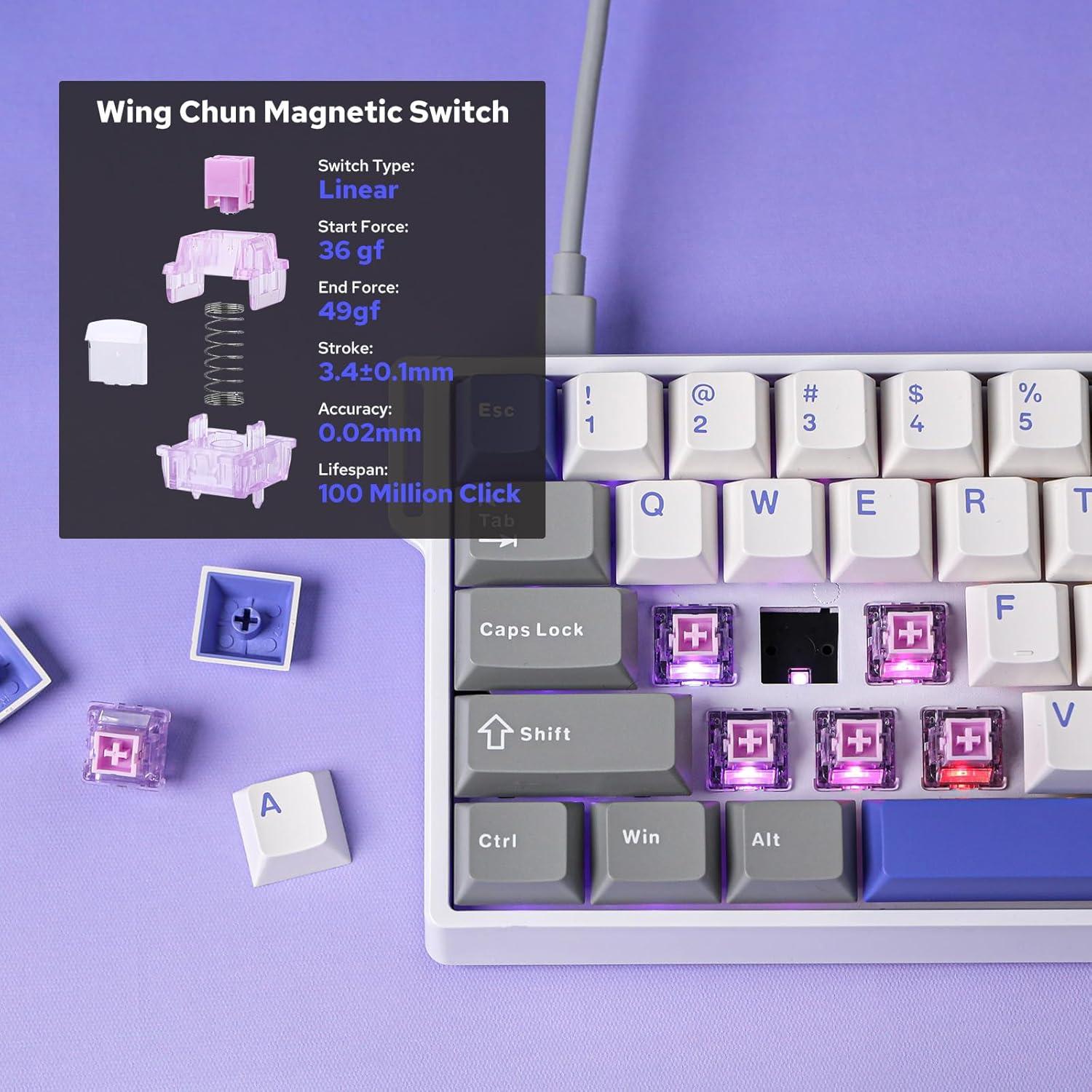 imageEPOMAKER Aula WIN60 HE 60 Wired Magnetic Keyboard with Adjustable Actuation 8000 Hz Polling Rate Hall Effect Switches HotSwap for FPS Games BlackGreyWhiteBlue