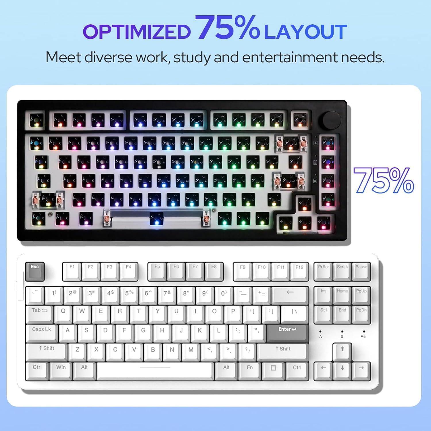 EPOMAKER Aura75 75% Mechanical Keyboard Kit, Hot Swappable Custom Keyboard Kit, 2.4Ghz/Bluetooth 5.0/USB-C Wired Wireless Gaming DIY Kit, with Silicone Pad, RGB Backlight for Win/Mac/Gaming (White)