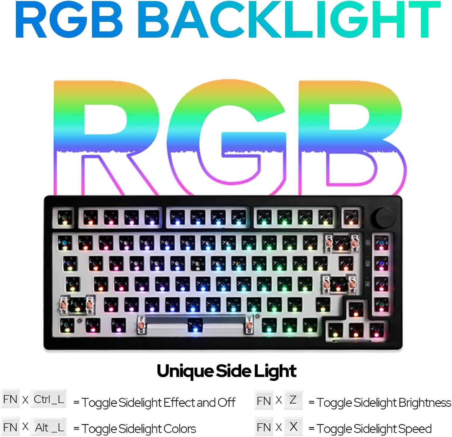 EPOMAKER Aura75 75% Mechanical Keyboard Kit, Hot Swappable Custom Keyboard Kit, 2.4Ghz/Bluetooth 5.0/USB-C Wired Wireless Gaming DIY Kit, with Silicone Pad, RGB Backlight for Win/Mac/Gaming (Black)
