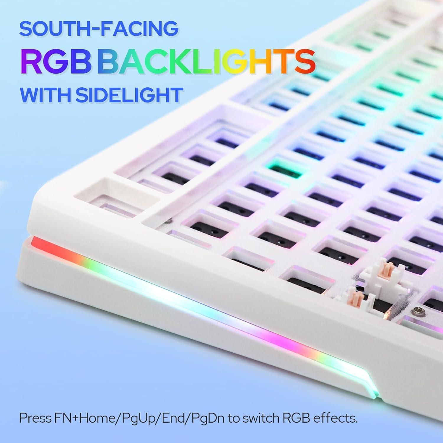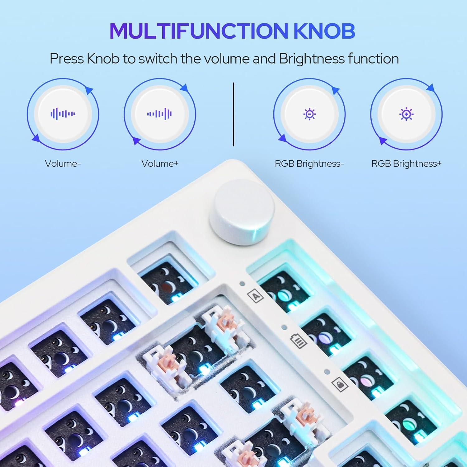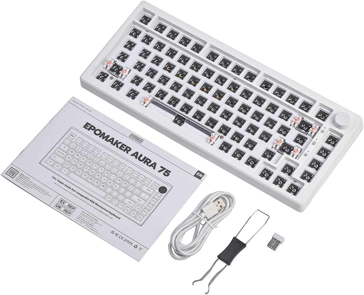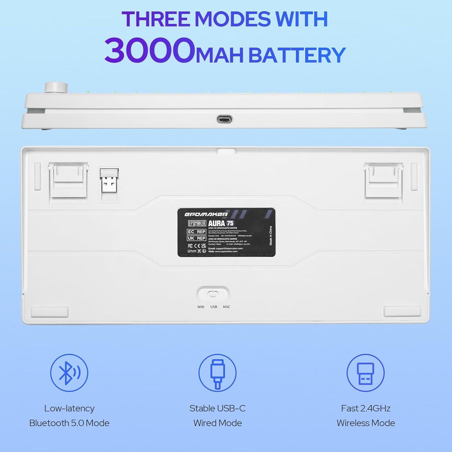 【Wireless and Wired Tri-Mode Keyboard】The AURA75 Mechanical Keyboard Kit embraces the power of adaptability, offering three distinct modes of connectivity to suit your every need. Seamlessly transition between wired and wireless operations, and experience the freedom of movement without compromising on performance. With its cutting-edge Bluetooth 5.0/2.4ghz technology, the AURA75 enables effortless wireless connections, allowing you to declutter your desk and enjoy a cable-free workspace.
