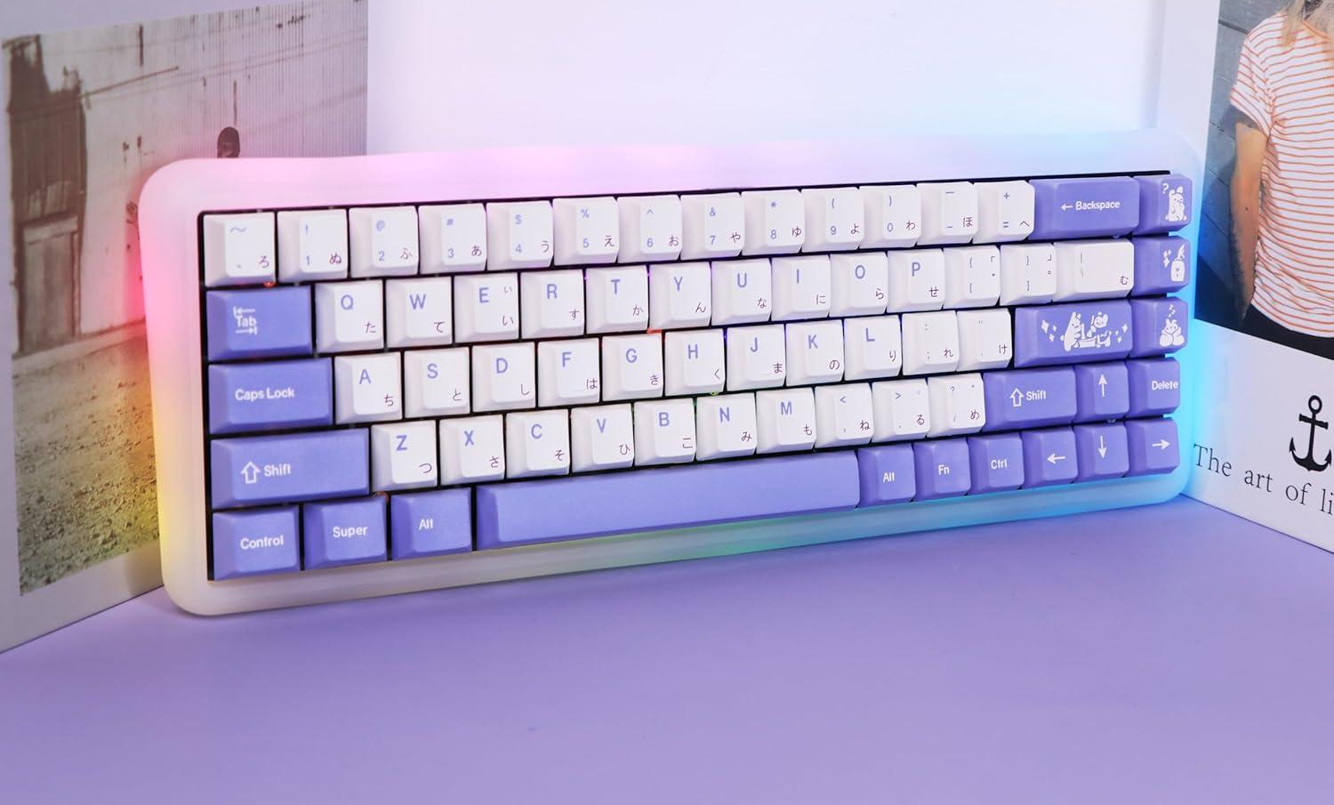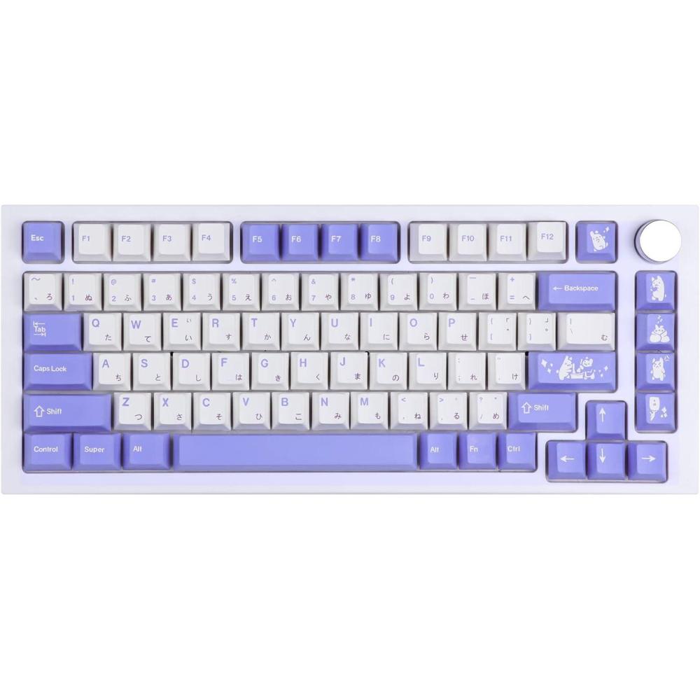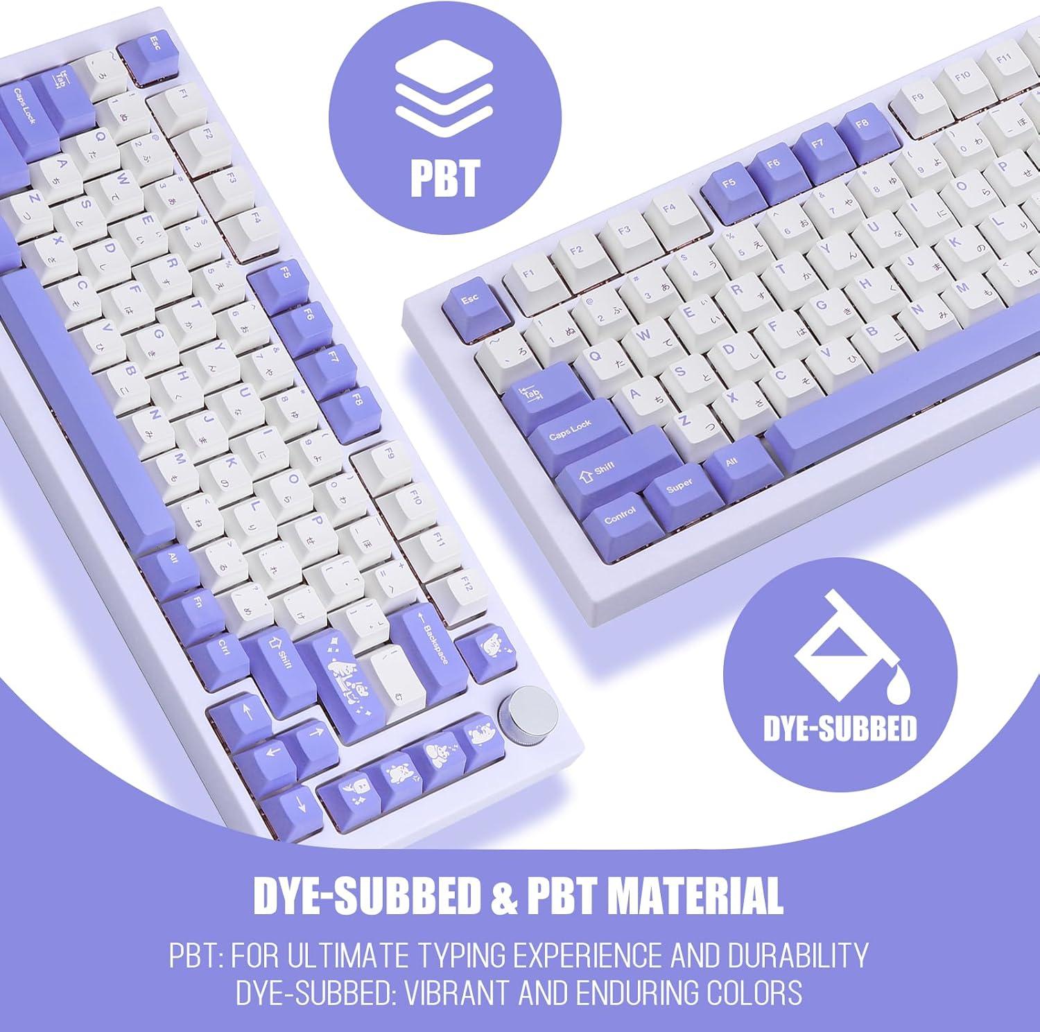 【A Purple Theme Keycaps Set with Hiragana】 EPOMAKER Bunny set adopts the Hiragana on the keycaps to present you another new way to learn the Japanese Alphabet, and a great way to add some character-literally to your favorite keyboard. With 134 PBT keys and each made through a dye-sublimation process, the set is durable, long-lasting and resistant to the oils that build up over time from the skin