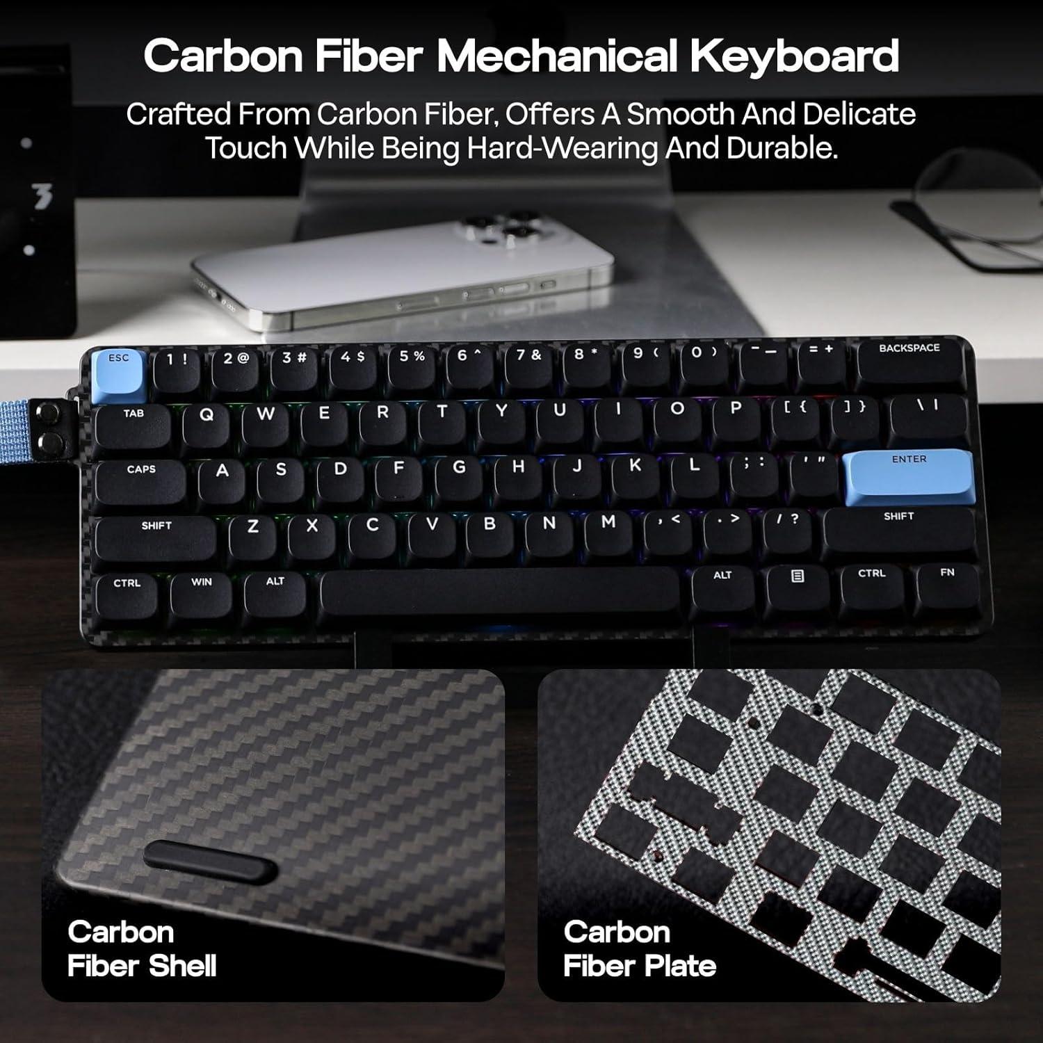 Durable Carbon Fiber Case: Crafted with a carbon fiber case and a stylish spray paint finish, the Carbon60 not only looks modern but also promises durability and longevity. This solid construction ensures it can withstand daily use without compromising on style