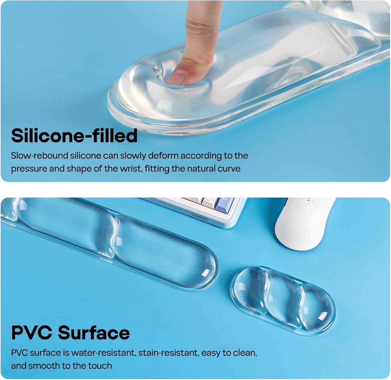 EPOMAKER CloudGel Wrist Rest for Keyboard and Mouse, 2 Pieces Silicone Wrist Support, Anti-Slip Rubber Bottom, Ergonomic Design, Suitable for Office/Computer/Laptop/Gaming (Green)(Clear)