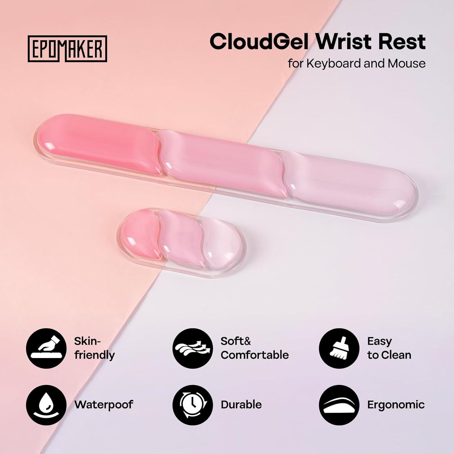 Fits All, Seamlessly: The EPOMAKER CloudGel Long Wrist Rest is designed specifically for typing needs, fitting mechanical gaming keyboards with various layouts such as 60%, 65%, 75%, TKL, 96%, and full size. The Short Wrist Rest is compatible with mainstream gaming mouse. Fit devices perfectly, relieving wrist pressure. Their sleek design seamlessly blends into all kinds of desktop styles, enhancing comfort and aesthetics for work, creation, or gaming