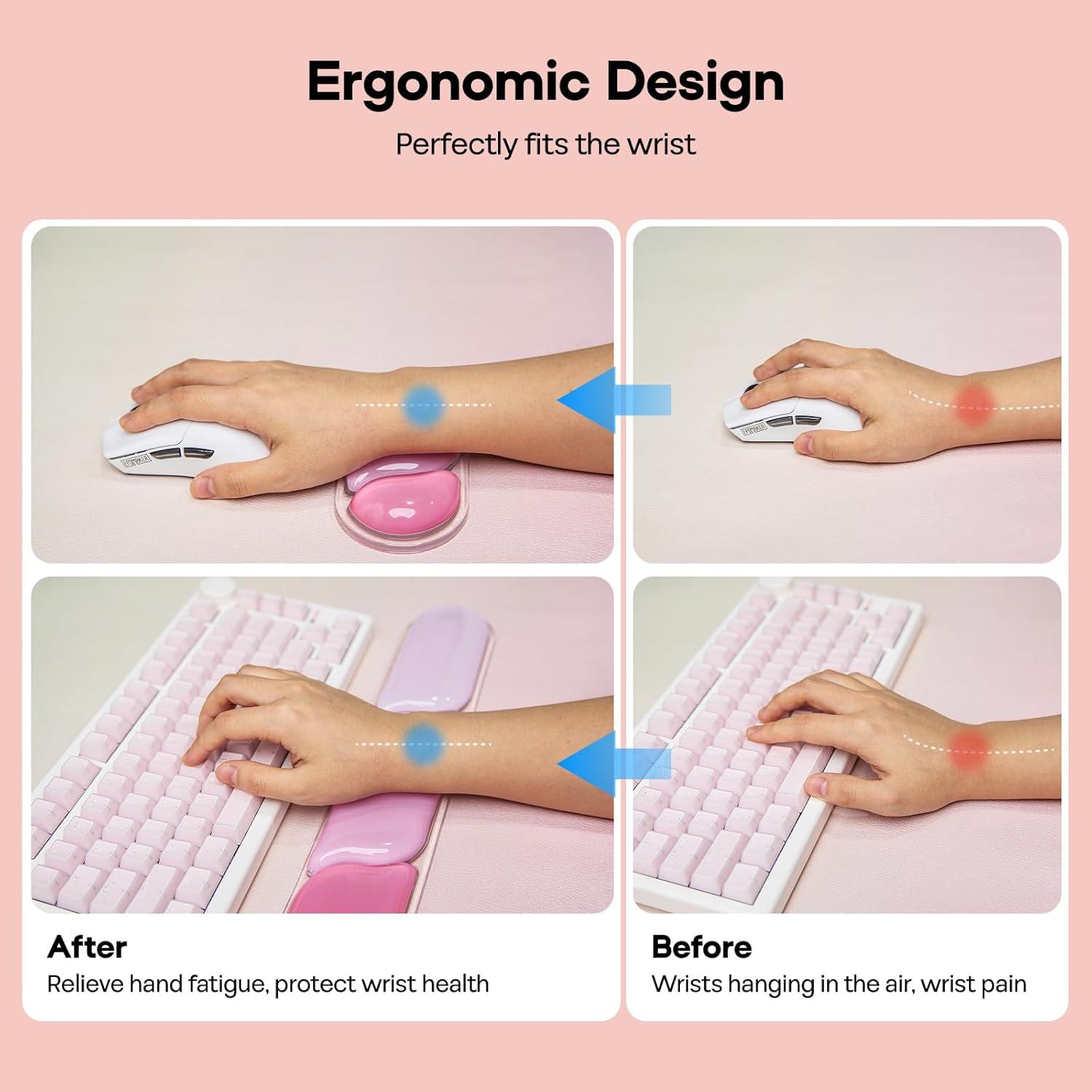 Premium Material, Ergonomic Fit: Choose the EPOMAKER CloudGel Wrist Rest to upgrade your desk setup and enjoy ultimate comfort. Centered around “optimal support,” its internal slow-rebound gel can slowly deform according to the pressure and shape of the wrist, fitting the natural curve. During long hours of work or creation, it can stably hold the wrist to avoid muscle tension. It can also gently adapt when you adjust your posture, effectively dispersing pressure, eliminating soreness, and making every use of the keyboard and mouse comfortable and easy