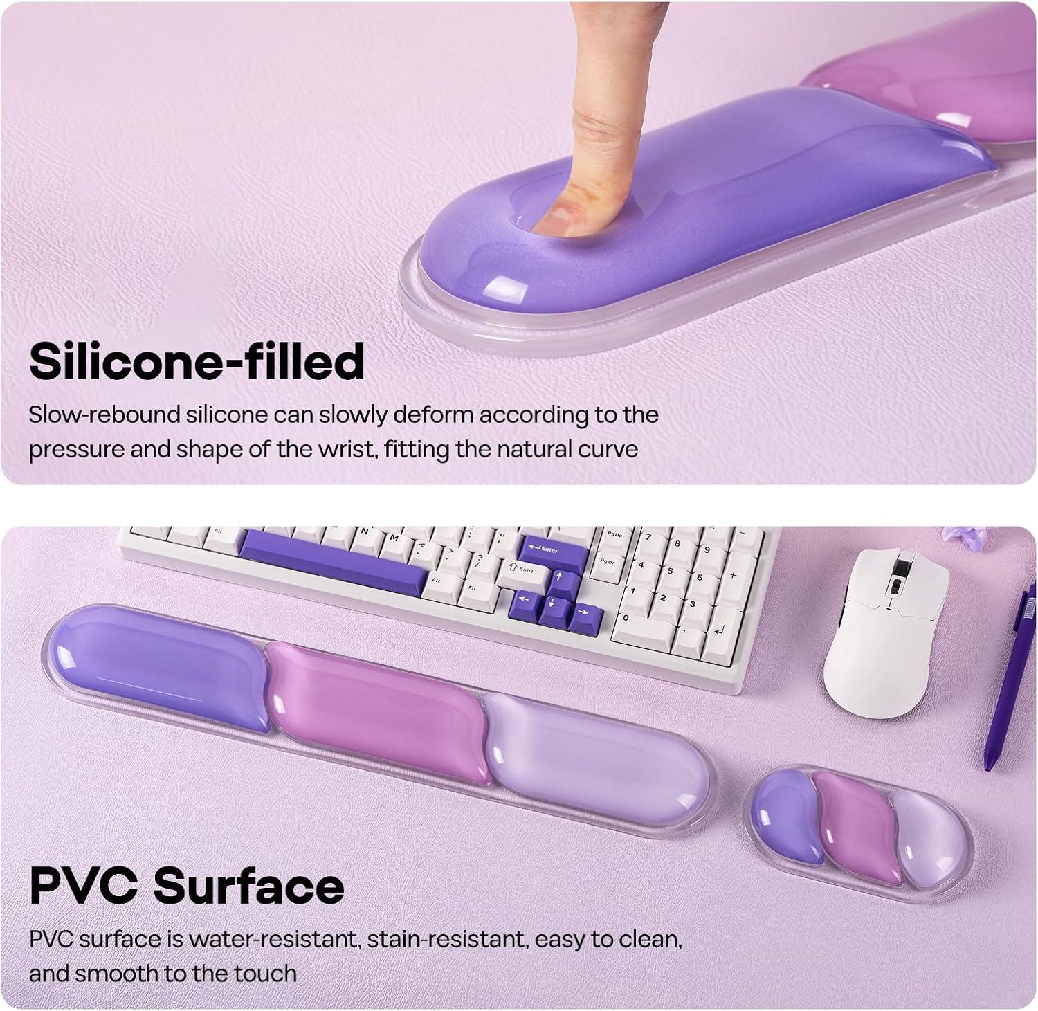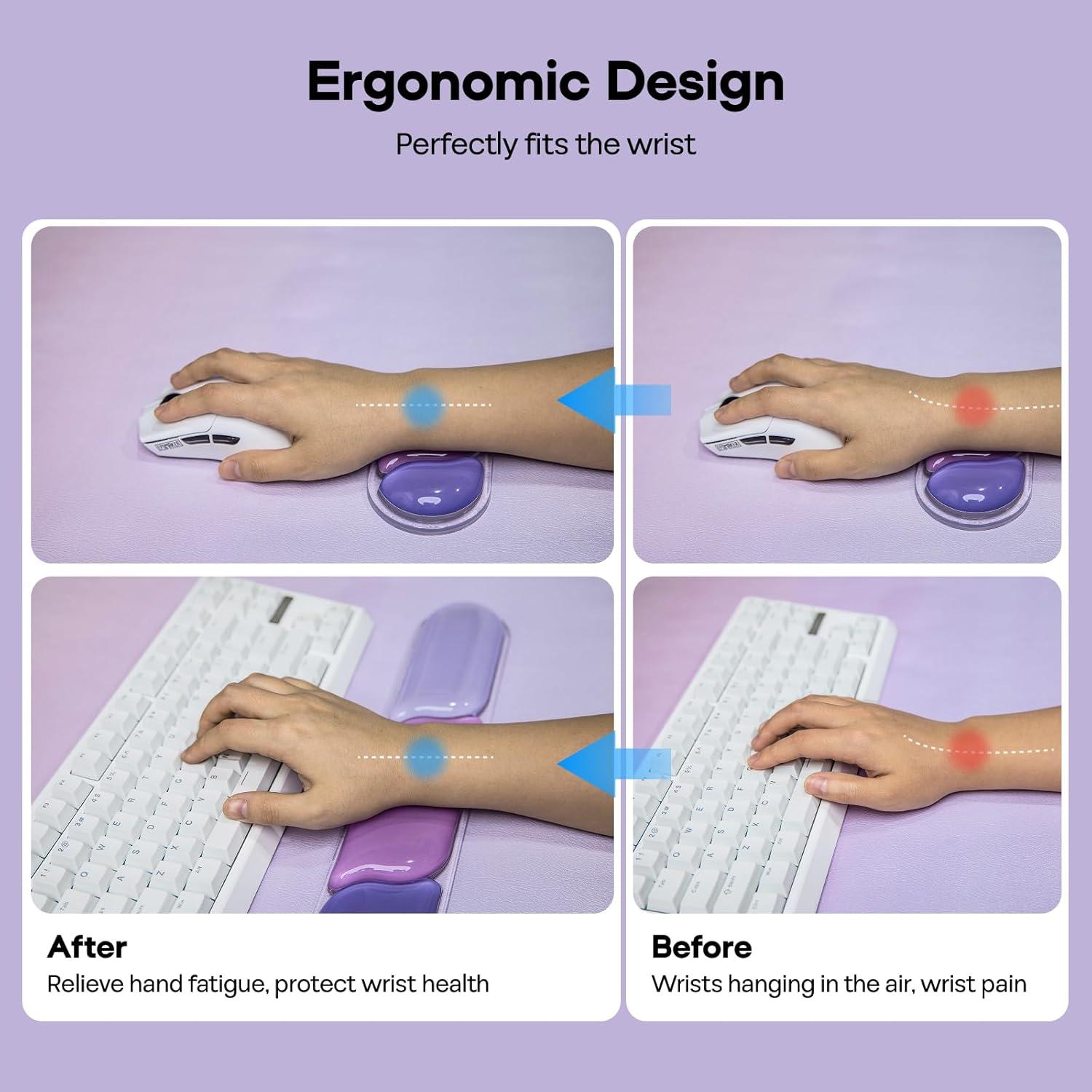 A Multitude of Hues Tailored to Your Aesthetic: The CloudGel wrist rest offers 5 distinct color variants: clear, blue, green, purple, and pink, each curated to align with diverse aesthetic preferences. Whether your workspace embodies an industrial, playful, or professional vibe, or your keyboard features a specific color palette, a complementary option is readily available. Effortlessly interchange colors to suit your mood, infusing your work area with a touch of character. Beyond its functional role as a wrist rest, it seamlessly integrates with your setup and mirrors your current state of mind