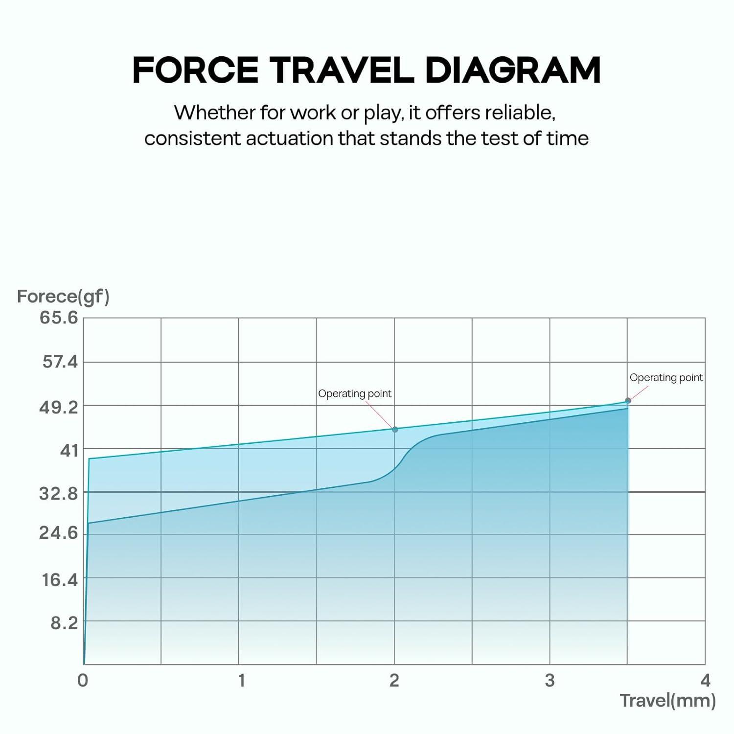 Effortless Linear Actuation: The Epomaker Creamy Jade Switch offers a refined linear actuation, providing a smooth and uninterrupted keystroke for both typing and gaming. With a 45±5gf actuation force and 50±5gf bottom-out force, the switches strike the perfect balance between responsiveness and ease of use, making them ideal for long typing sessions or fast-paced gameplay.