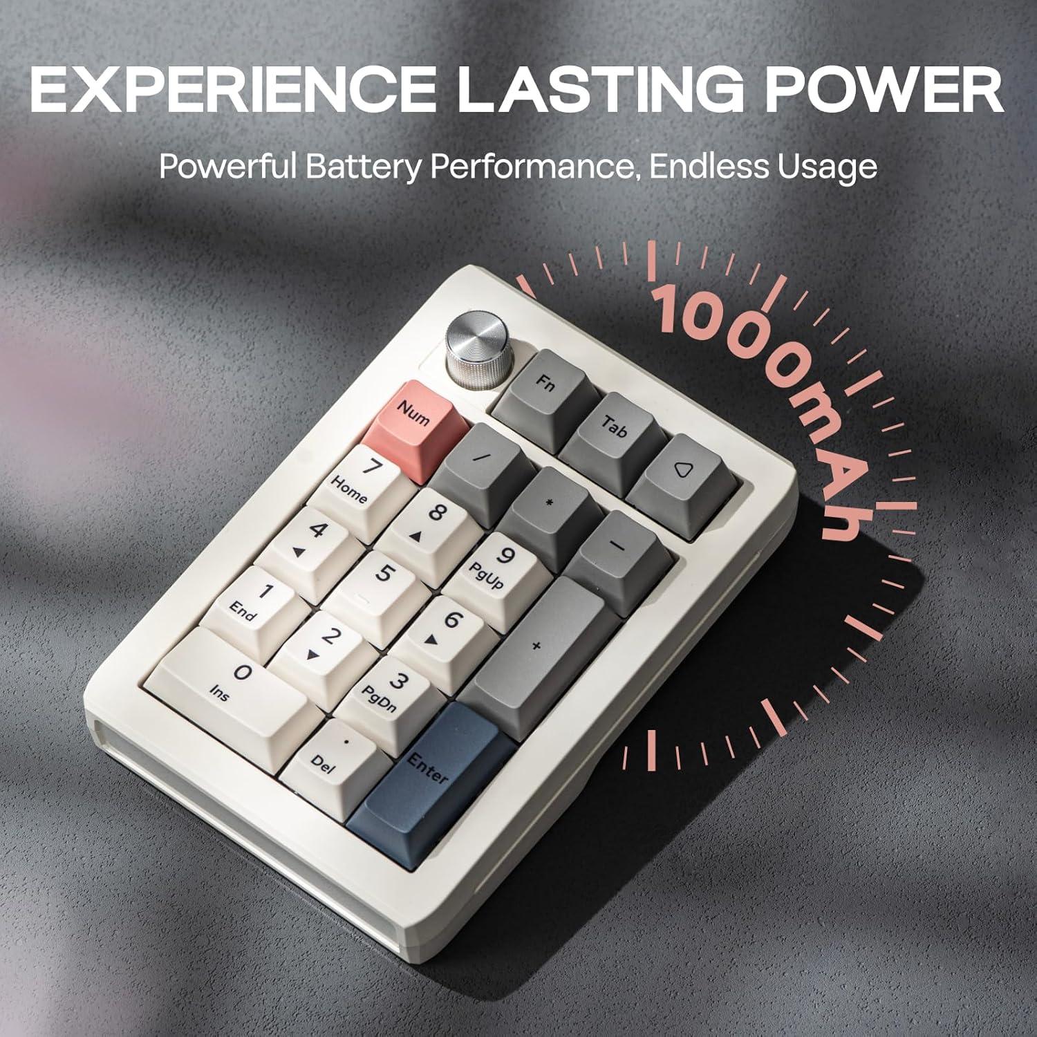 EPOMAKER EK21 VIA Gasket Number Pad with 1000mAh Battery, BT 5.0/2.4GHz/Wired Hot-Swap Numpad with Aluminum Alloy knob, Programmable for Win/Mac/Gaming (Retro White, Wisteria V2 Switch)(Retro White)