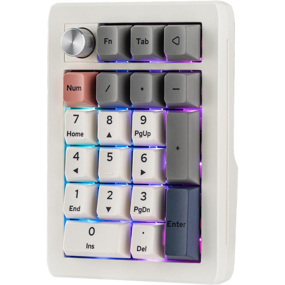 EK21 VIA Gasket Numpad: Elevate your typing experience with the EK21 VIA Gasket Number Pad, a versatile and highly functional numeric keypad perfect for professionals and gamers alike. Featuring an advanced layout with 20 keys and a premium aluminum alloy knob, this hot-swappable numpad excels in both performance and aesthetics. With its robust construction, customizable RGB lighting, and exceptional battery life, the EK21 is designed to enhance productivity while offering seamless compatibility across various operating systems, including Windows, Mac, and Android. Experience the future of typing with a product that combines cutting-edge technology with user-centric design