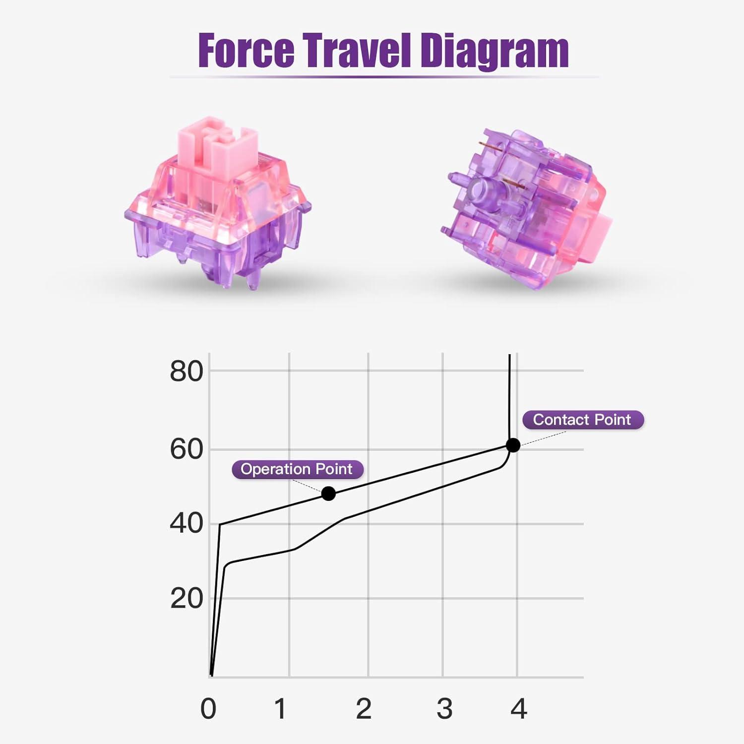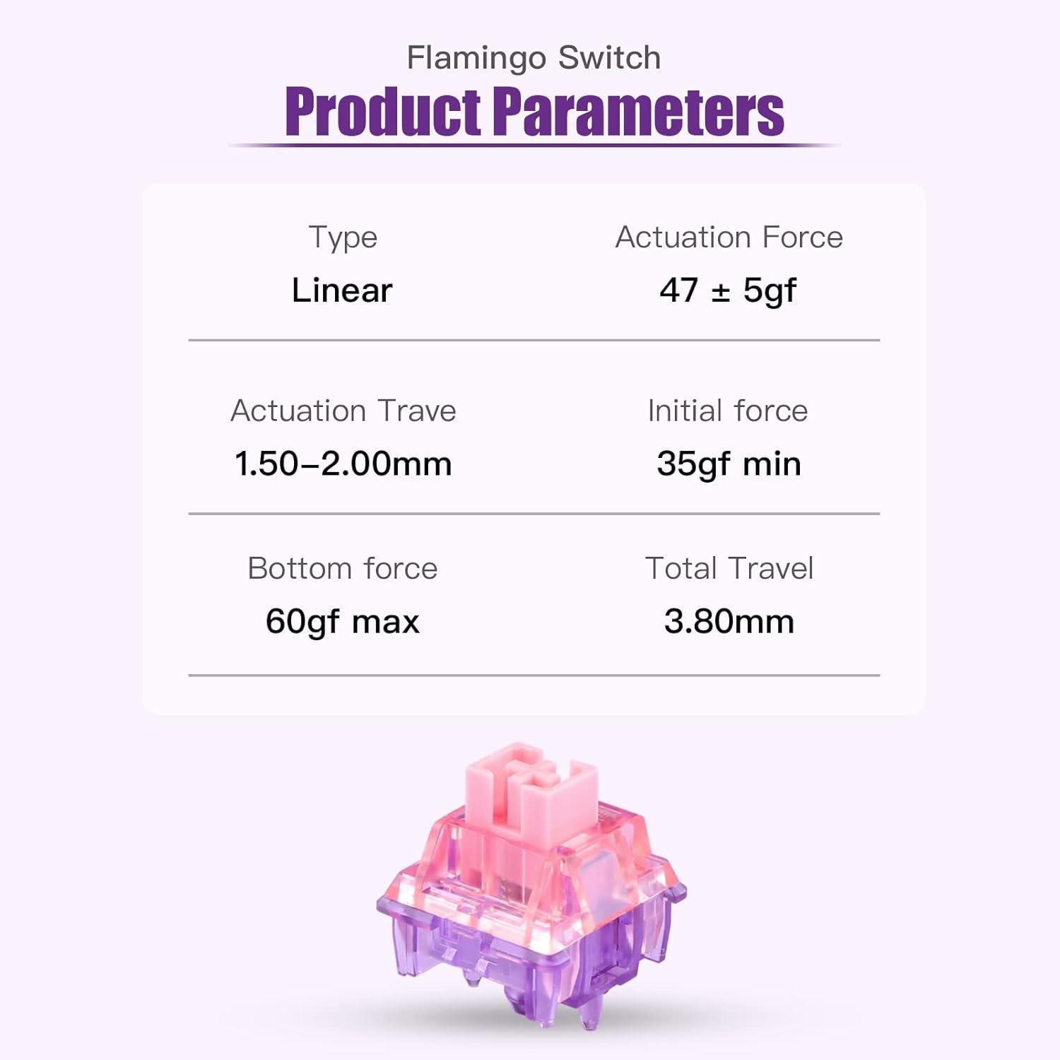 【Compatible with MX Structure Keycaps】EPOMAKER Flamingo switches are designed with general MX structure so that they can fit most keycaps sets with (X) cross stem. This greatly improves the compatibility and you can feel free to change the switch and remake your own keyboard