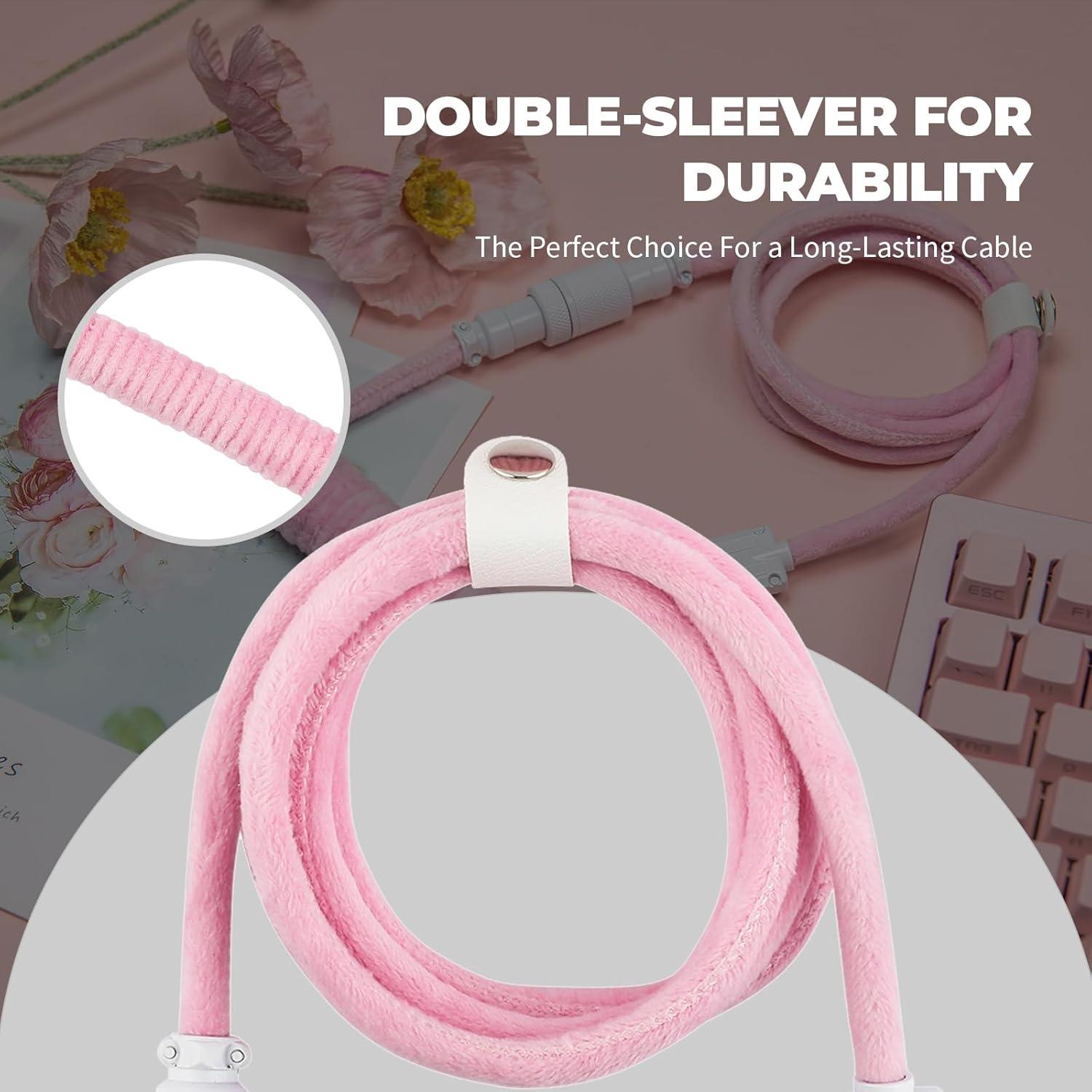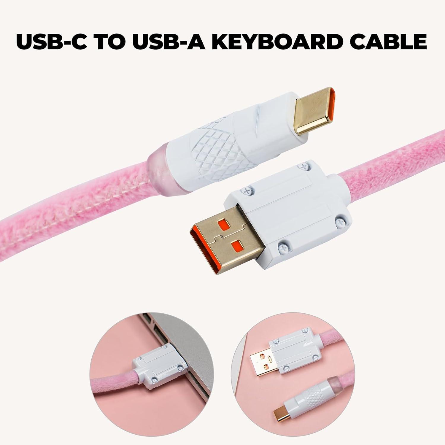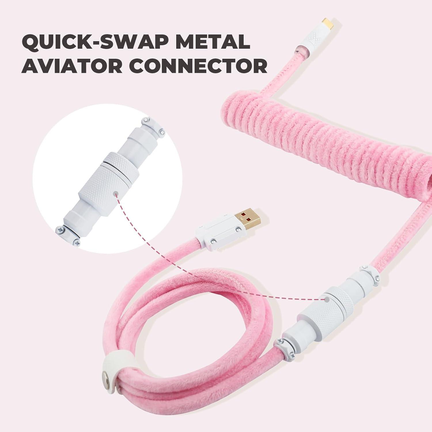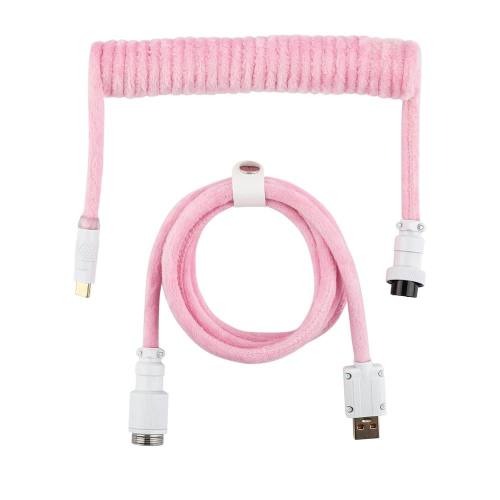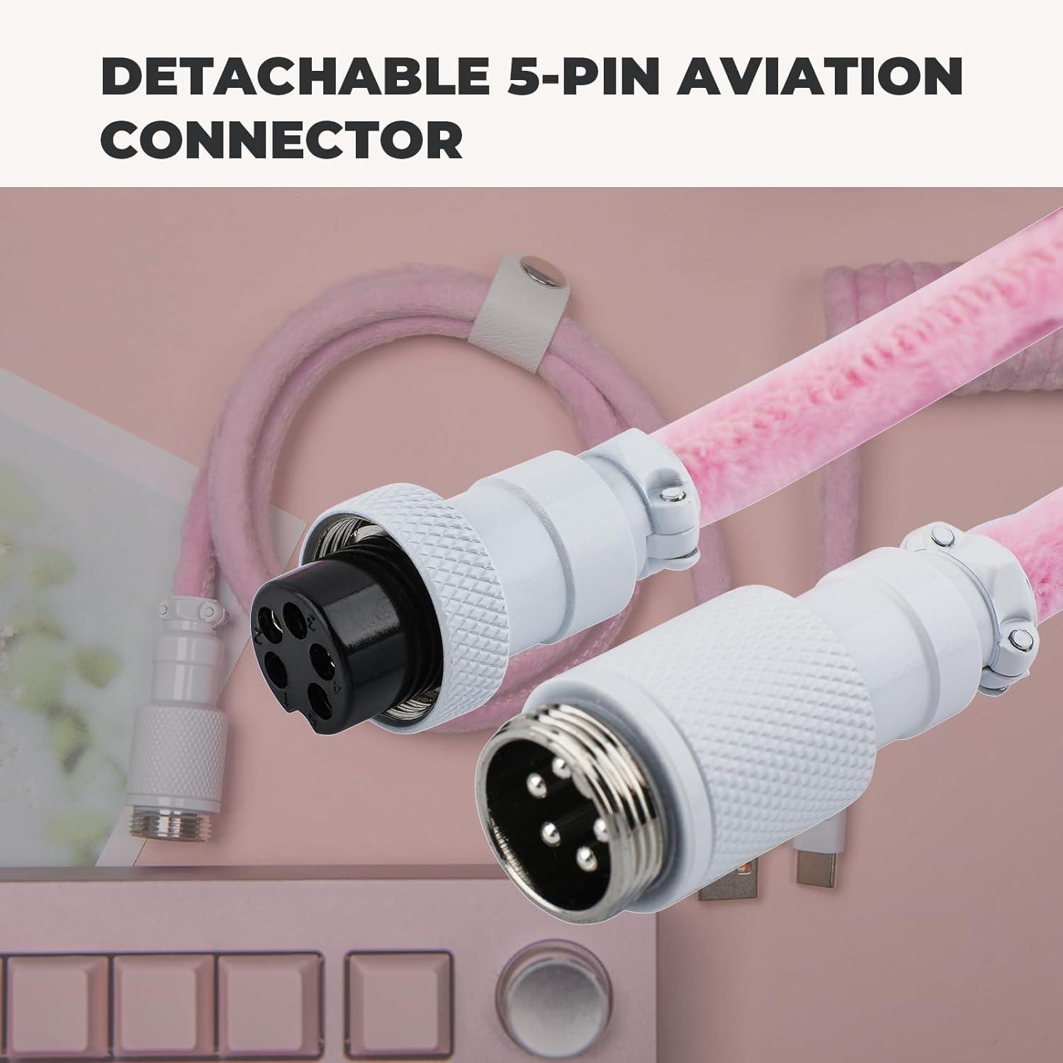 EPOMAKER FurMix Custom Coiled Keyboard Cable, 1.5m USB-C to USB-A Double-Sleeved Cable for Mechanical Keyboard, with Detachable 5-Pin Metal Aviator Connector for Gaming Keyboard (Pink)(Pink)
