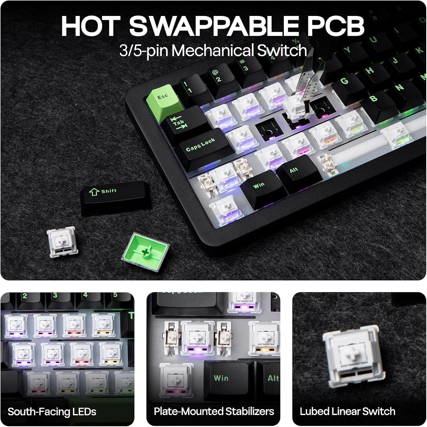 Wireless Gaming Keyboard with 6000mAh Power: Power your passion with the double 3000mah battery of Galaxy68 wireless keyboard, delivering an astounding 500 hours of light-off usage for weeks in Bluetooth or 2.4Ghz on a single charge, or 27 hours of continuous wireless command in marathon gaming sessions with vibrant backlighting at brightest. Revel in the stable 1000Hz polling rate in both 2.4GHz wireless and wired modes for instant trigger and experience a virtually instantaneous connection between your actions and in-game results with the ultra-low 2.5ms latency in cable mode.