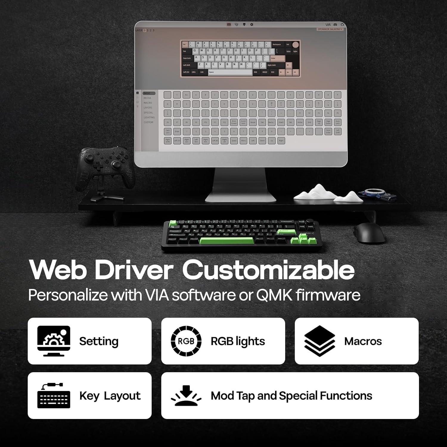Custom VIA/QMK Keyboard: Following its predecessors like Galaxy65 and Galaxy100, the Galaxy68 QMK/VIA keyboard offers unparalleled customization. Crafting macros for complex in-game maneuvers or programming dedicated keys for your favorite software shortcuts—all made seamless with QMK's limitless power with a trustworthy cable. Need to adjust your layout on the fly? VIA's intuitive web interface provides real-time configuration, allowing you to remap keys, fine-tune layouts, and experiment with special features such as mod taps without flashing firmware. Get this VIA keyboard that adapts to your playstyle and workflow, for precision and performance that truly feels your own.