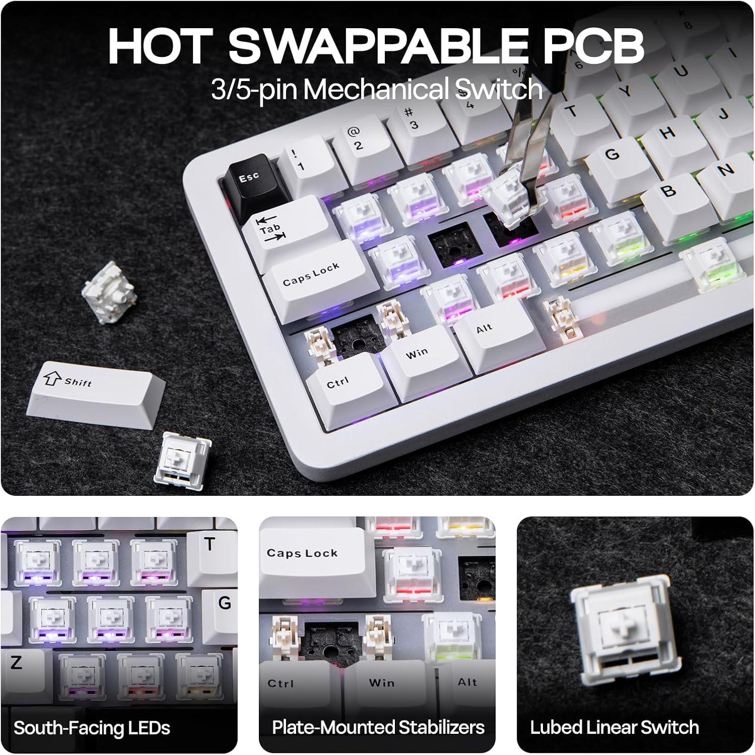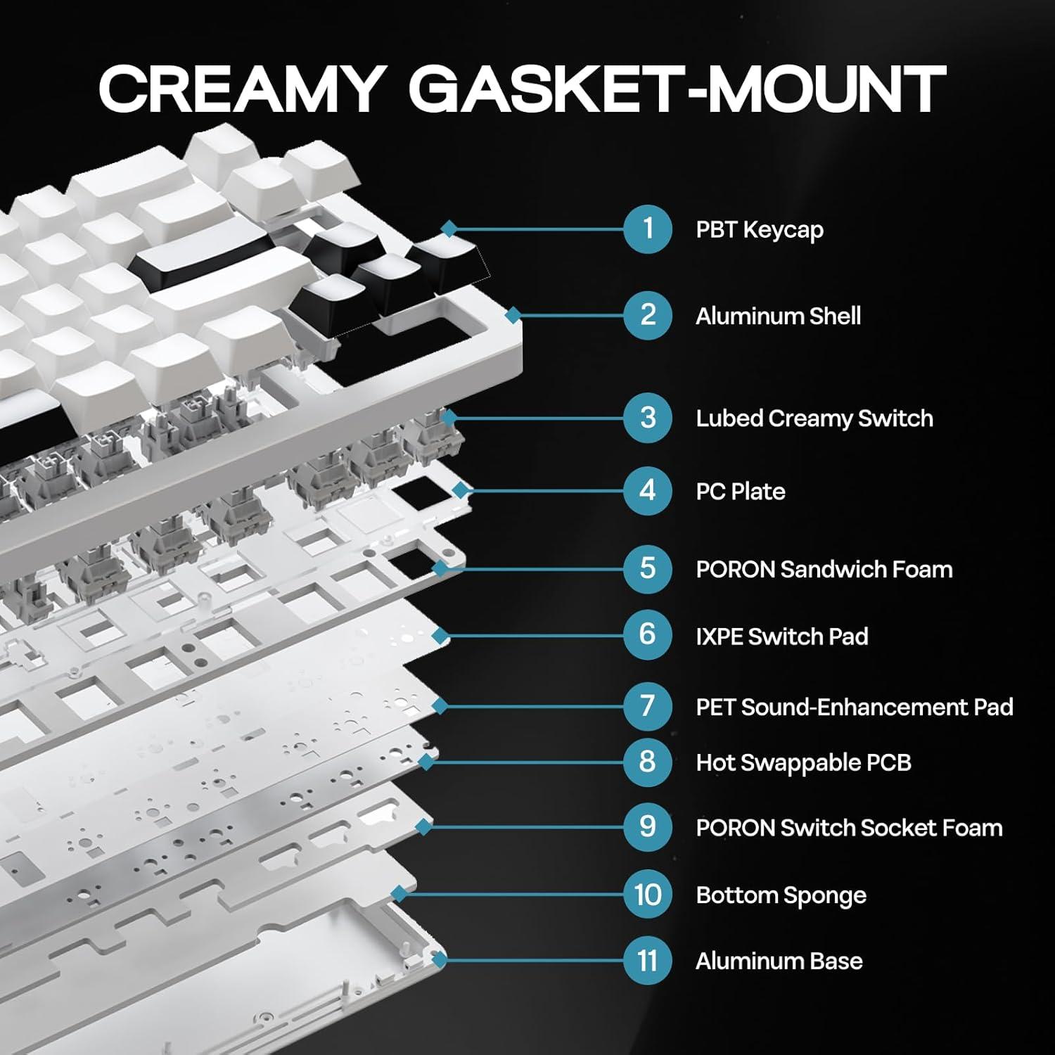 Innovative Gasket-Mount Structure: Get customization joy with the Galaxy68 for unrivalled premium feel and personalized performance. The introduction of gasket uses soft materials to separate PCB between cases for even softer landing, while the addition of flex-cut on PCB and plate gives the keyboard ultra flexibility to create the creamy buttery typing feel with no inconsistency between rows.