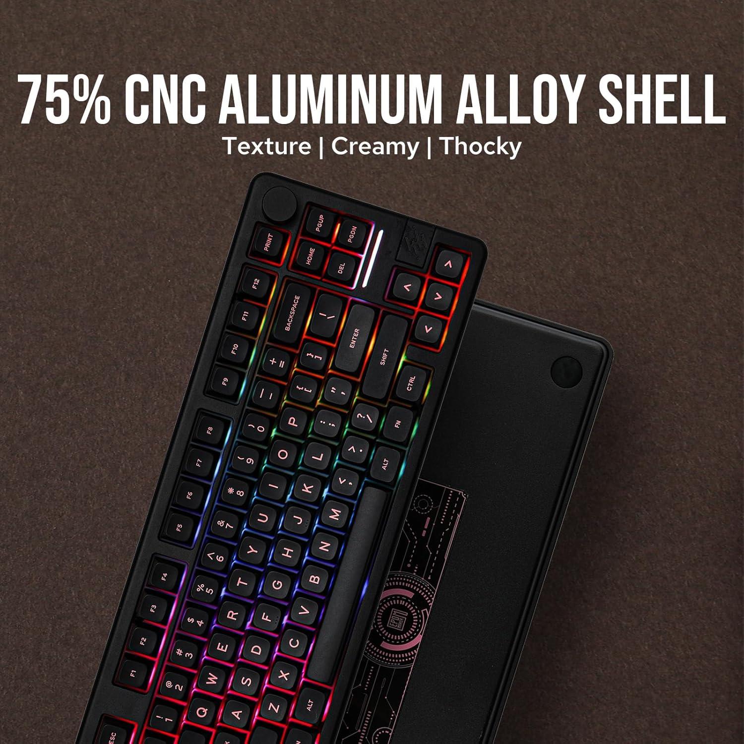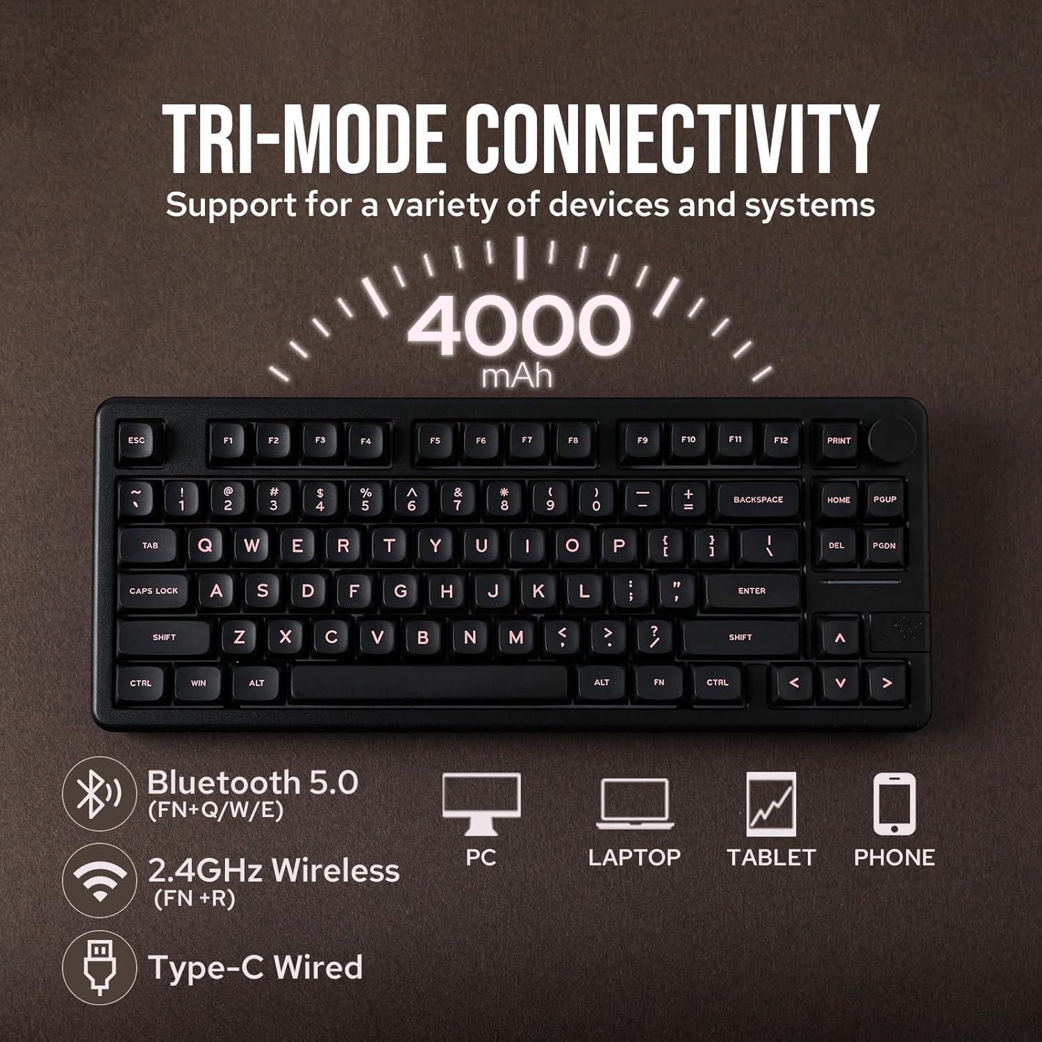 EPOMAKER Galaxy70 Wireless Gaming Keyboard, 75% Aluminium Mechanical Keyboard, Bluetooth 5.0/2.4GHz/USB-C Wired, Programmable, Hot Swappable, for PC/Mac/Office/Gaming (Blue, Petal Switch)(Black)