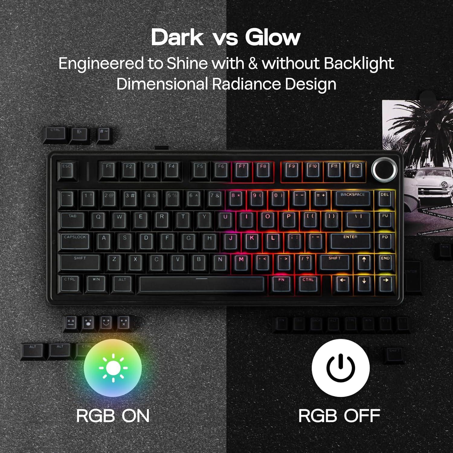 Durable PBT Keycaps: Comfortable to the touch and durable against daily wear, the Glintrix Keycaps are made of high-quality PBT plastics, with resistant to heat, abrasion and dirt. No slimy or greasy surface, this premium material keeps your keycap clean and vivid with continuous use