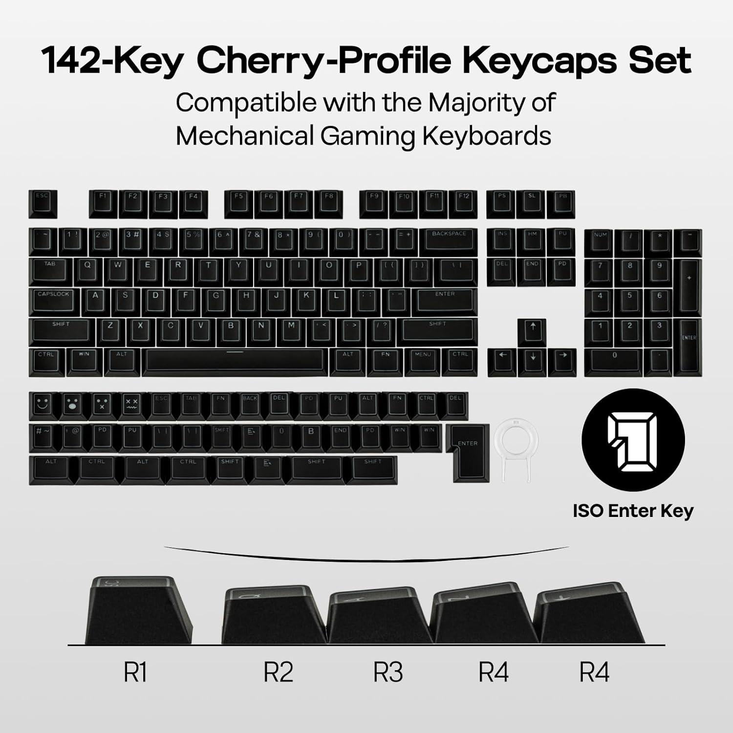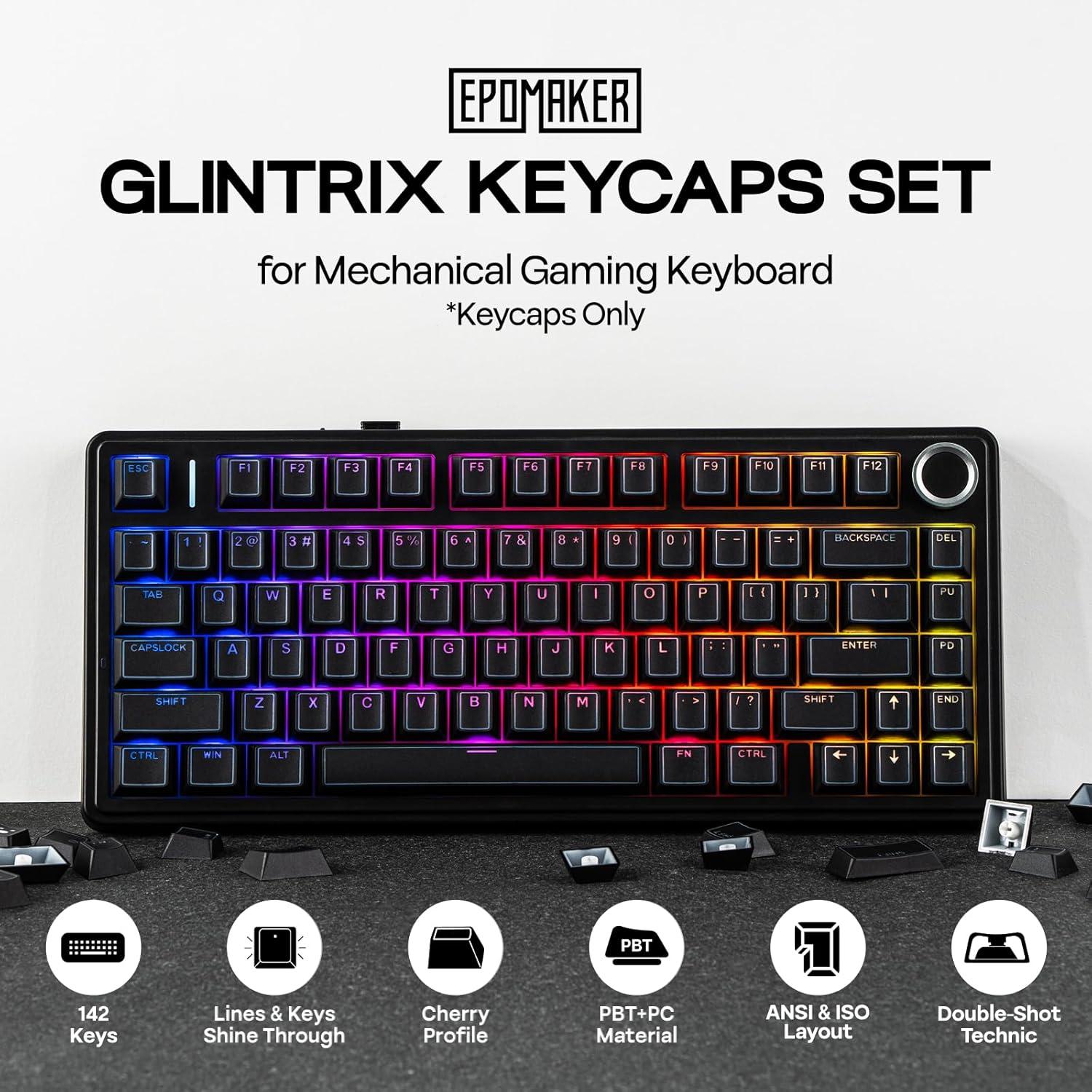Wide Compatibility with Mechanical Keyboard: Well packed with 142 keys, the Glintrix Keycap Set is compatible with 60%, 65%, 70%, 75%, 80%, 87%, 96% and full-sized mechanical keyboards. The inclusion of both ISO and ANSI enter key makes this keycap set competent for universal use, perfect for most mainstream gaming keyboards with MX style mechanical switches