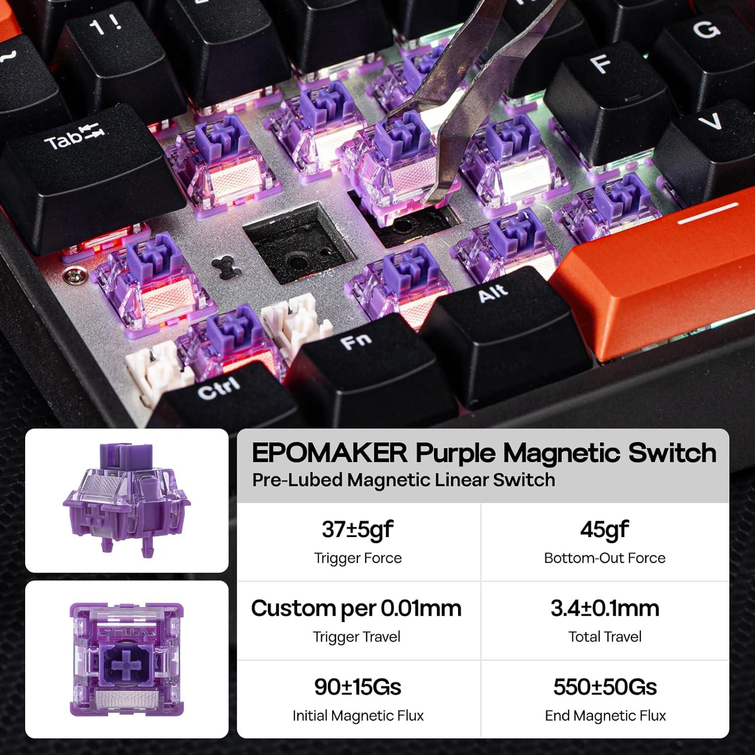 Dynamic Keystroke (DKS) & MT (Mod Tap): Rejoice in the astonishing speed and accuracy of HE30 Hall Effect Keyboard, for formidable actions in FPS, MOBA, Rhythm, and leisure games. Each keystroke is consistent and creamy smooth, with factory-lubed magnetic switch, for swift delivery of action from fingertip to screen; while DKS and MT function enables true analog input, as one stroke delivers up to 4 actions for common actions and key combos.