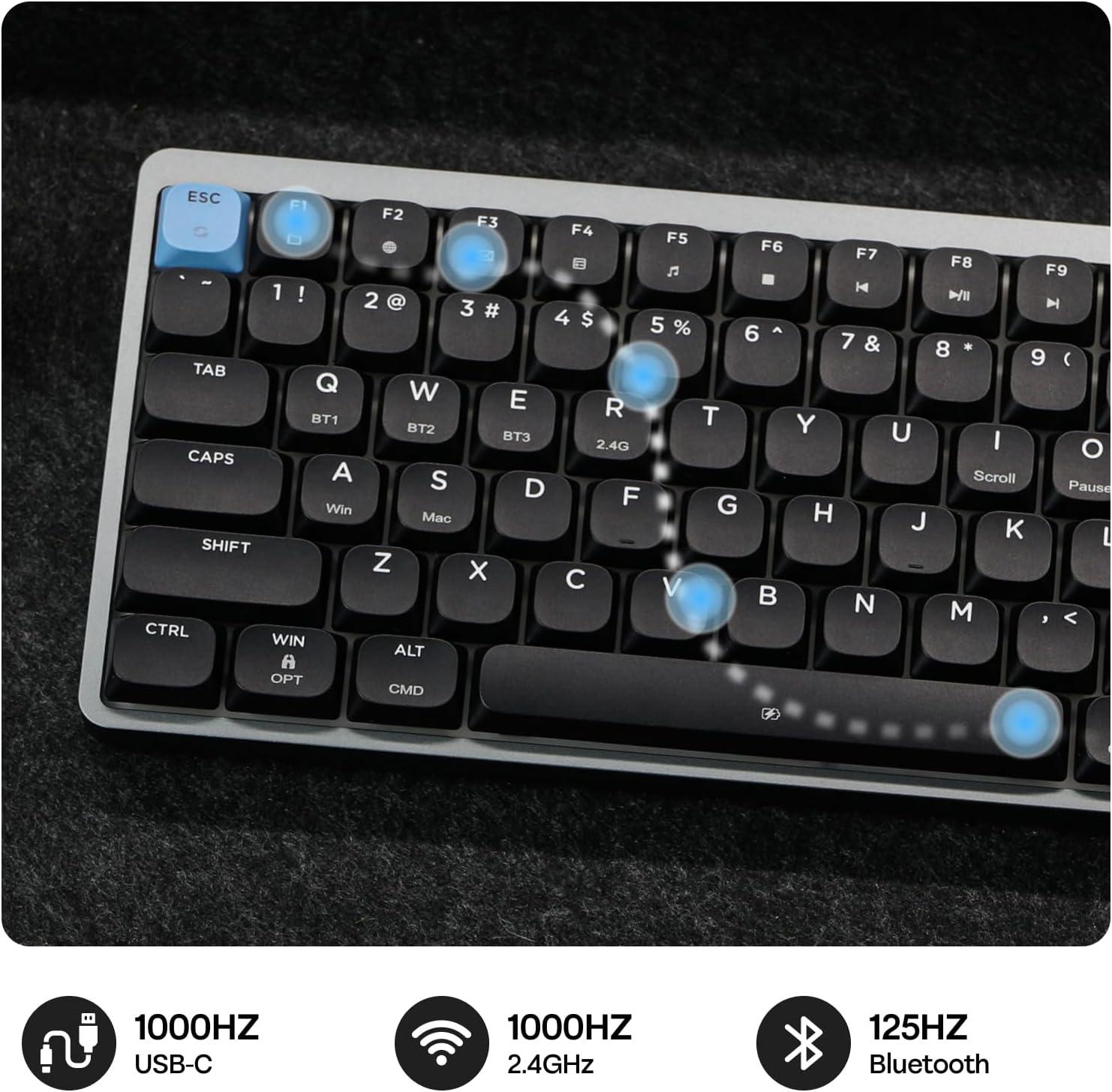 Limitless Versatility: Transform your desk setup to the modern minimalist style with the Luma84 Wireless Keyboard, as tangled wires become past worries. Take pleasure in the seamless connection Luma84 offers via Bluetooth 5.0, 2.4 GHz wireless, and USB-C, all supporting anti-ghosting for accuracy and low latency. Effortlessly switch between your laptop, desktop, tablet, and even your mobile phone with on-board memory of up to 5 paired devices and immerse yourself in the flawless compatibility this keyboard promises across Windows, Mac, and Linux systems