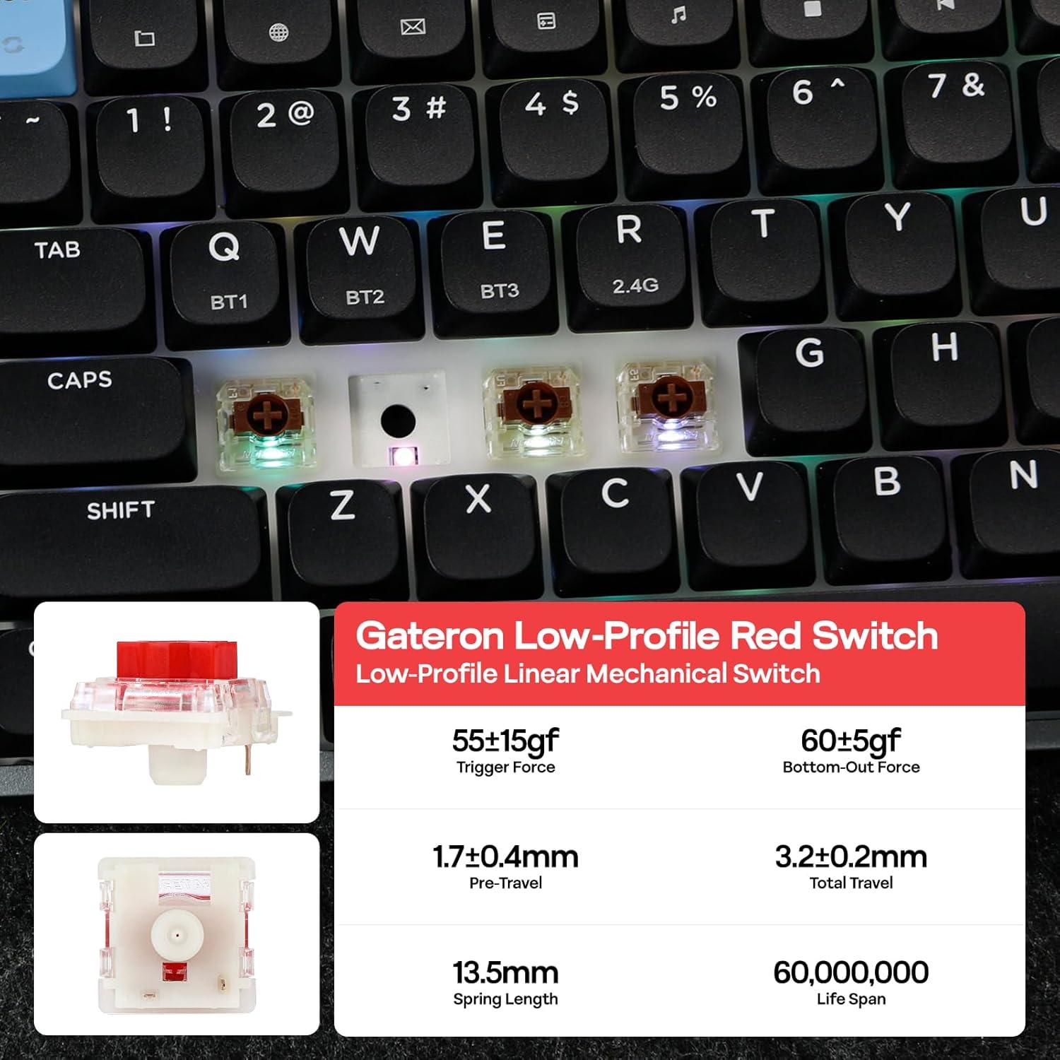 Low-Profile, High Performance: Level up your gaming setup with our Luma84 Low-Profile Mechanical Keyboard. Crafted from durable aluminum and greasy-free PBT keycaps, the Luma84 boasts unmatched sturdiness and minimalist elegance as a stylish centerpiece for any gaming setup. With 84 time-tested Gateron low-profile switches, enjoy its ergonomic comfort with reduced strain on your wrists, and experience faster response times and lightning-fast keystrokes with its shortened key travel distance that’s creamy smooth