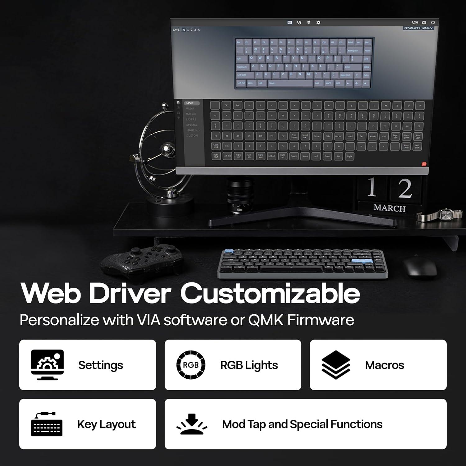 Effortless Customization: Tired of the limitations of your current membrane keyboard? Try the Luma84 QMK Keyboard with Hot-Swap and VIA support, to revolutionize your workflow with unparalleled flexibility. Automate repetitive tasks with macros to streamline coding or improve efficiency at the office, with the open-sourced QMK firmware or the intuitive interface of VIA software. Reduce strain with ergonomic layouts by remapping frequently used keys or swapping switches with various trigger forces to suit your needs. Unlock the world of productivity and personalization, with the Luma84 that transforms the way you work