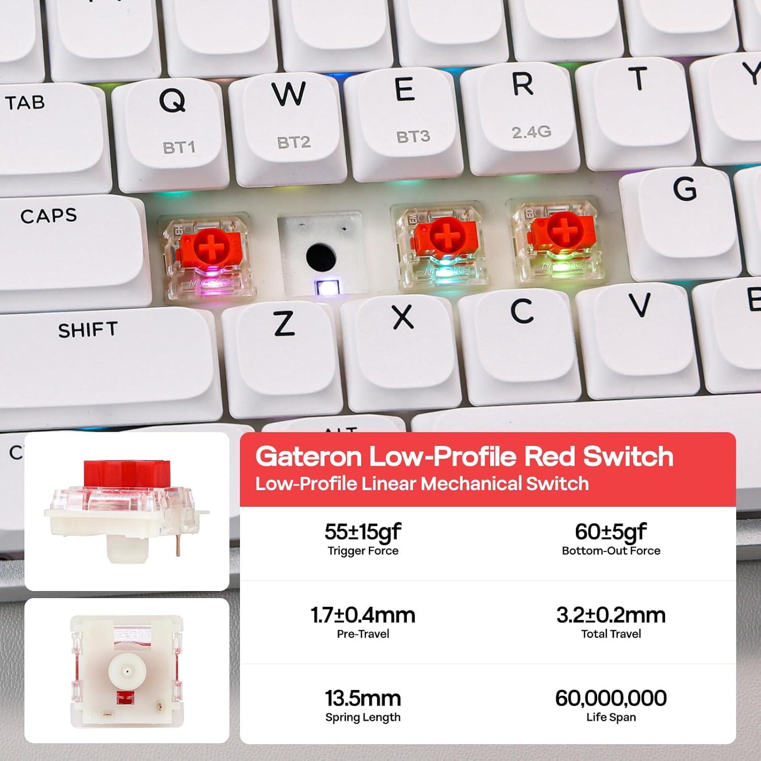 Low-Profile, High Performance: Level up your gaming setup with our Luma84 Low-Profile Mechanical Keyboard. Crafted from durable aluminum and greasy-free PBT keycaps, the Luma84 boasts unmatched sturdiness and minimalist elegance as a stylish centerpiece for any gaming setup. With 84 time-tested Gateron low-profile switches, enjoy its ergonomic comfort with reduced strain on your wrists, and experience faster response times and lightning-fast keystrokes with its shortened key travel distance that’s creamy smooth