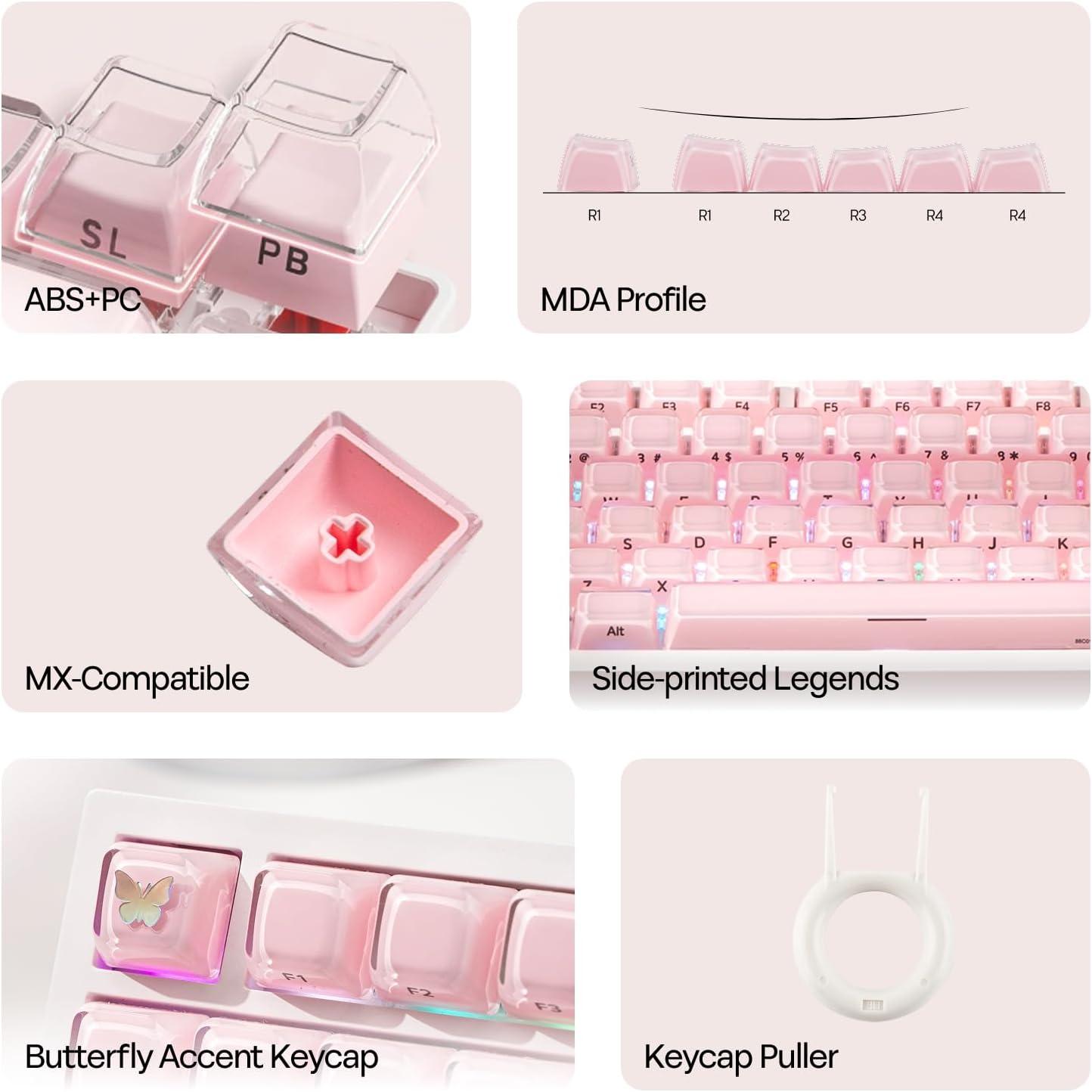 EPOMAKER Lusterfly Jelly Keycaps Set – 123 Keys Double-Shot Laser Engraved, MDA Profile, ABS+PC, Non-Shine-Through, MX-Compatible for 61/68/84/87/98/100/104-Key Mechanical Keyboard (Black)(Pink)