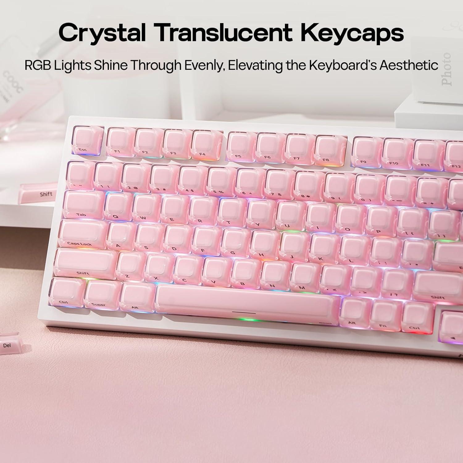 Durable Material & Fade-Resistant Printing for Long-Lasting Use: Crafted from premium ABS+PC composite material, the double-layer stacked design masterfully blends durability with lightweight comfort—resisting scratches, yellowing, and wear even during prolonged, high-intensity use. The crystal-white finish, paired with side-printed legends, exudes a pure, modern aesthetic, perfectly suited for users who favor minimalism or “soft glow” styles. When paired with RGB lighting, the translucent jelly-like material diffuses colors evenly, creating a stunning, radiant effect that makes every key shine brightly.