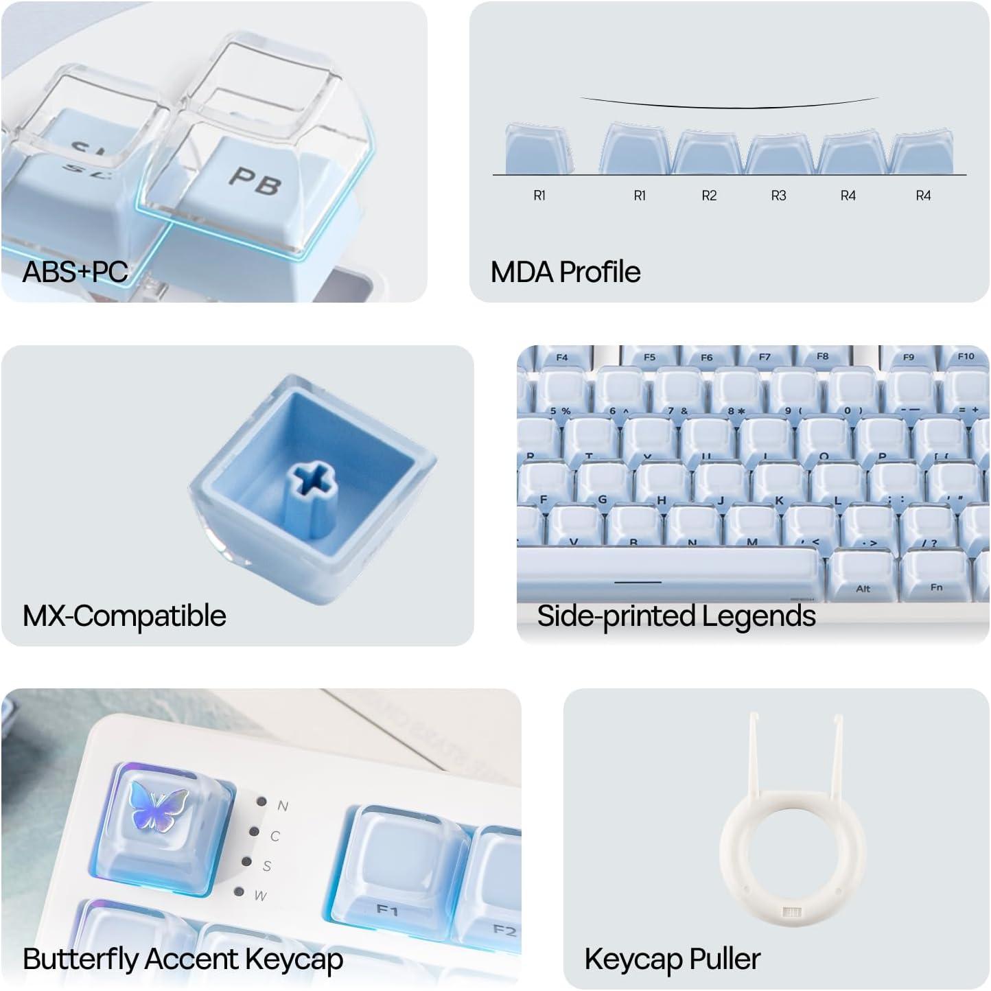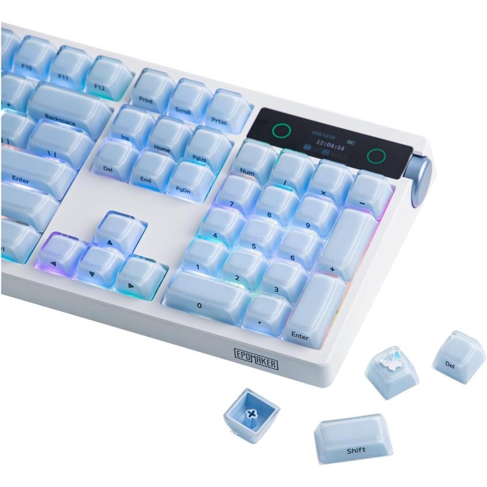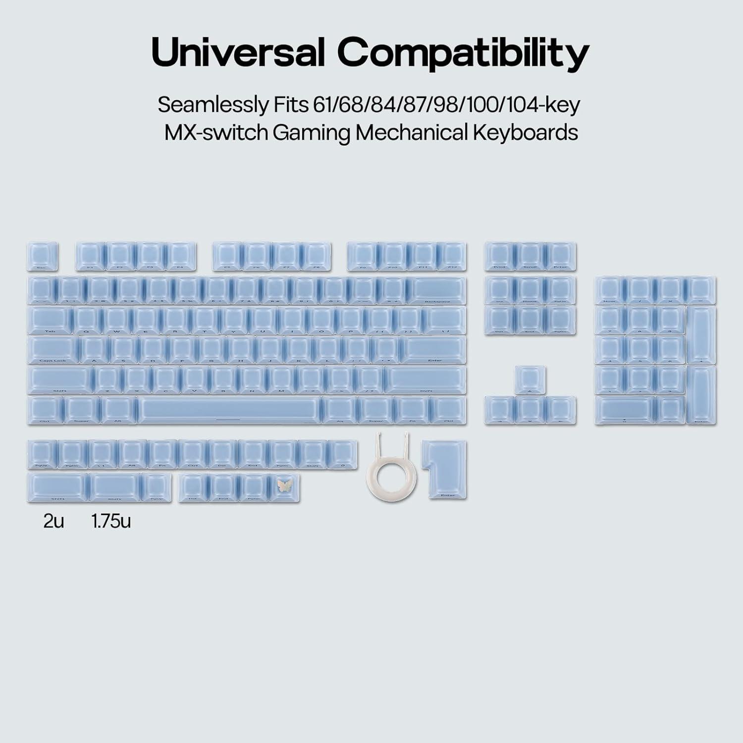 Exquisite Laser-Reflective Butterfly Accent Keycap: Each Lusterfly Jelly Keycaps set comes with a unique butterfly-decorated keycap, featuring intricate laser-coated patterns that shimmer with a rainbow iridescence under light. This eye-catching detail adds a touch of elegance and personality to your keyboard, making it stand out from generic keycap sets on the market.