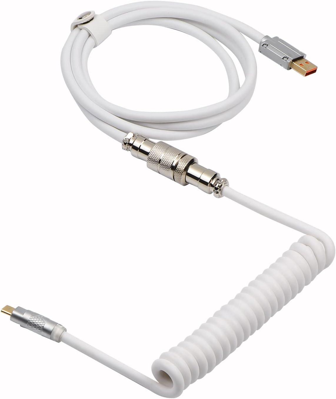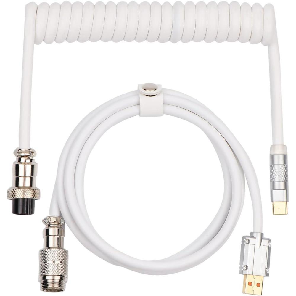 EPOMAKER Mix 1.8m Coiled Keyboard Cable, USB C to USB A TPU Cable for Mechanical Gaming Keyboard, with Detachable Metal Aviator for Custom Keyboard, White(Puff White)