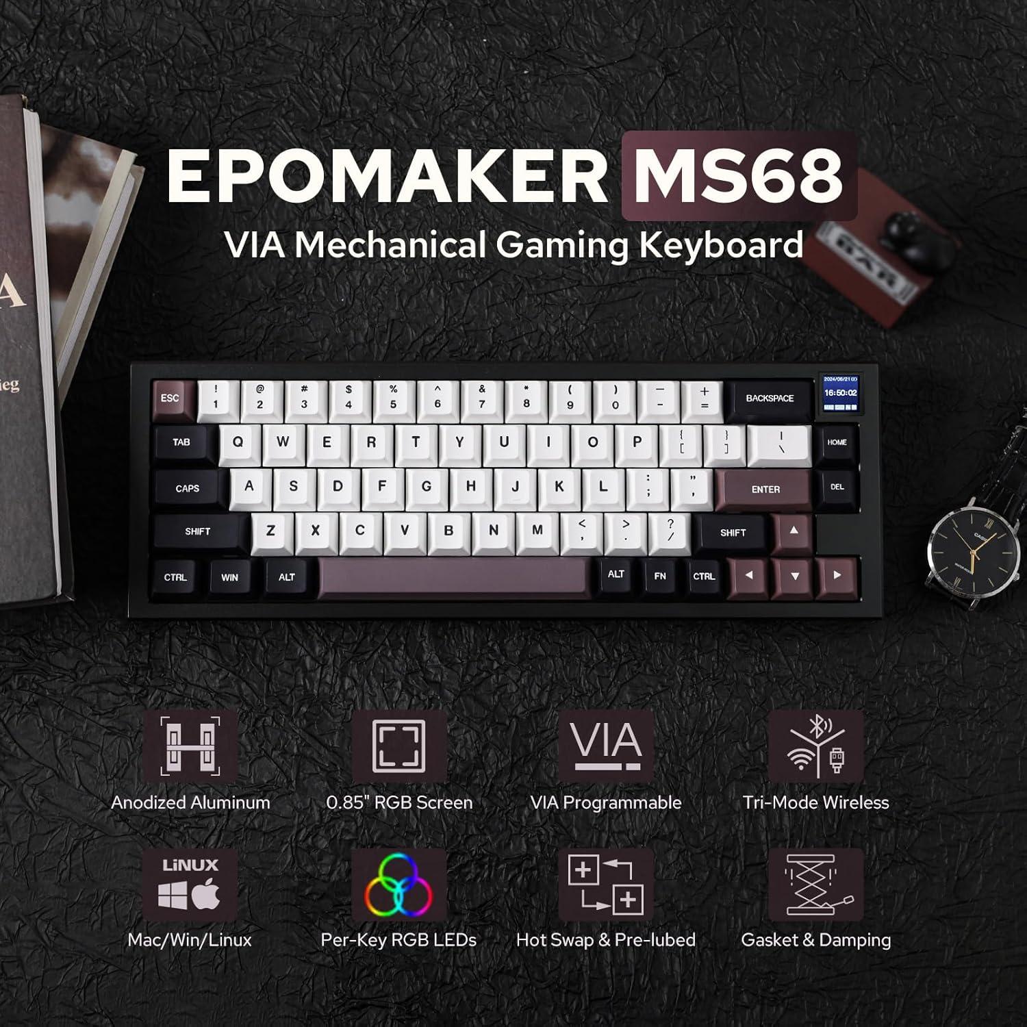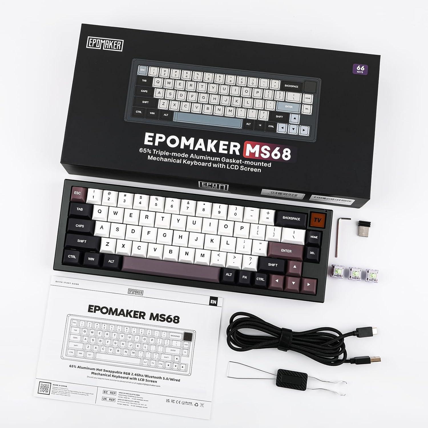 Be the first to review “EPOMAKER MS68 Wireless Gaming Keyboard with 0.85” Screen, CNC Aluminum Alloy Mechanical Keyboard, Bluetooth 5.0/2.4ghz/Wired, Hot Swappable (Black, Wisteria Linear Switch)”