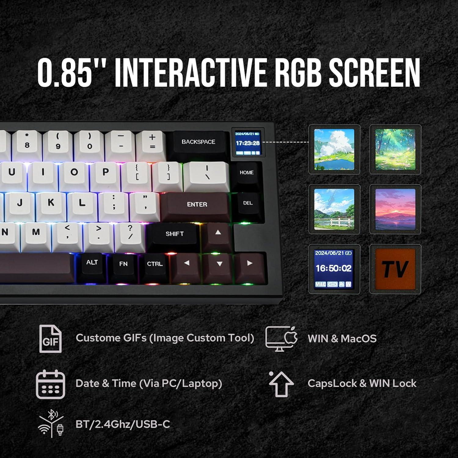 【0.85 Inch TFT Screen】The MS68 is equipped with a 0.85-inch TFT screen located in the top right corner. This customizable display allows you to showcase GIFs, monitor battery status, display the date and time, and view connectivity and OS information. This adds a personal touch and keeps you informed at a glance, enhancing both functionality and aesthetics.