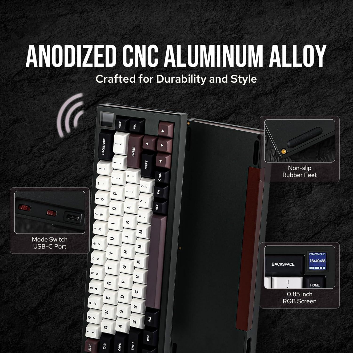 EPOMAKER MS68 Wireless Gaming Keyboard with 0.85” Screen, CNC Aluminum Alloy Mechanical Keyboard, Bluetooth 5.0/2.4ghz/Wired, Hot Swappable (Black, Wisteria Linear Switch)